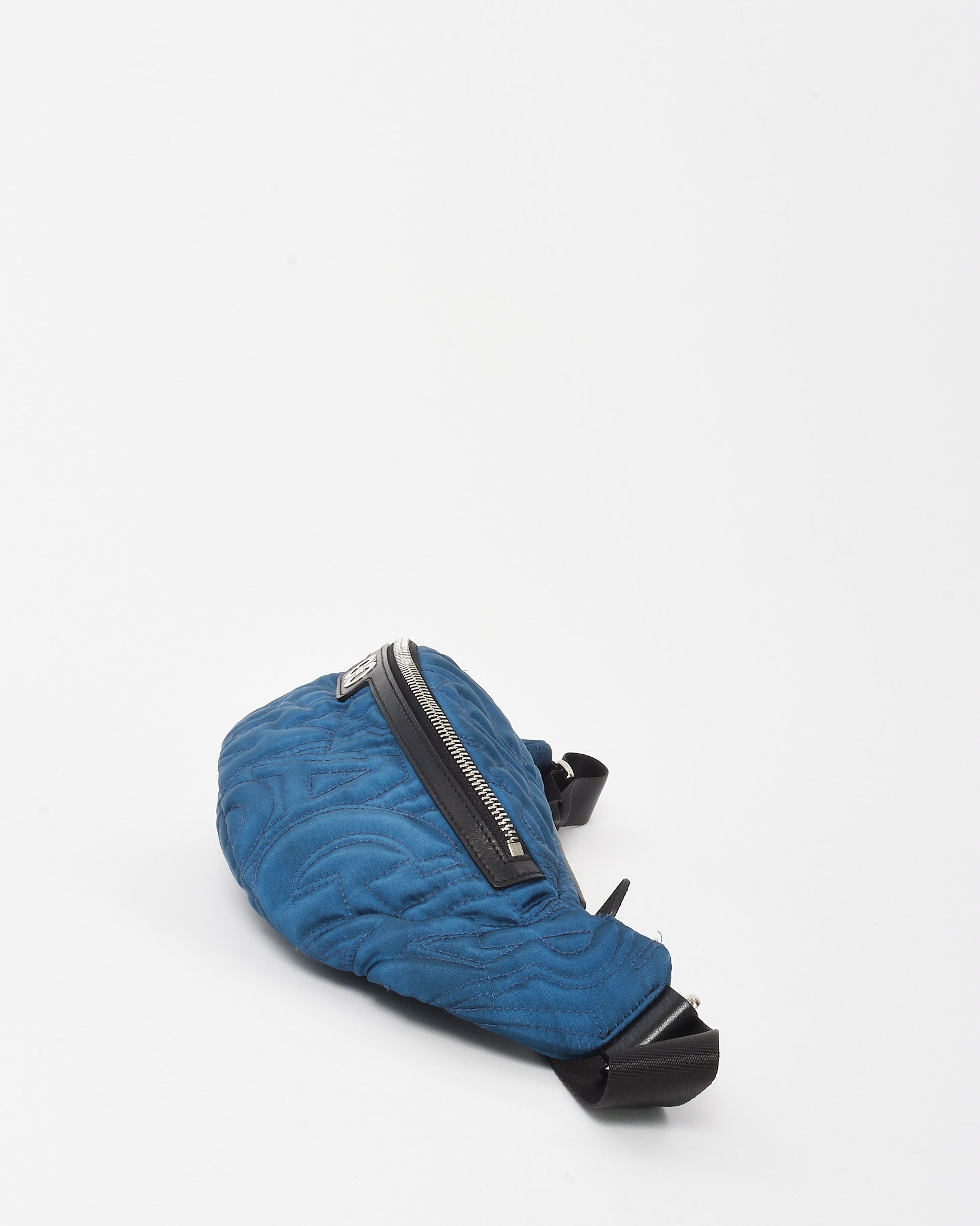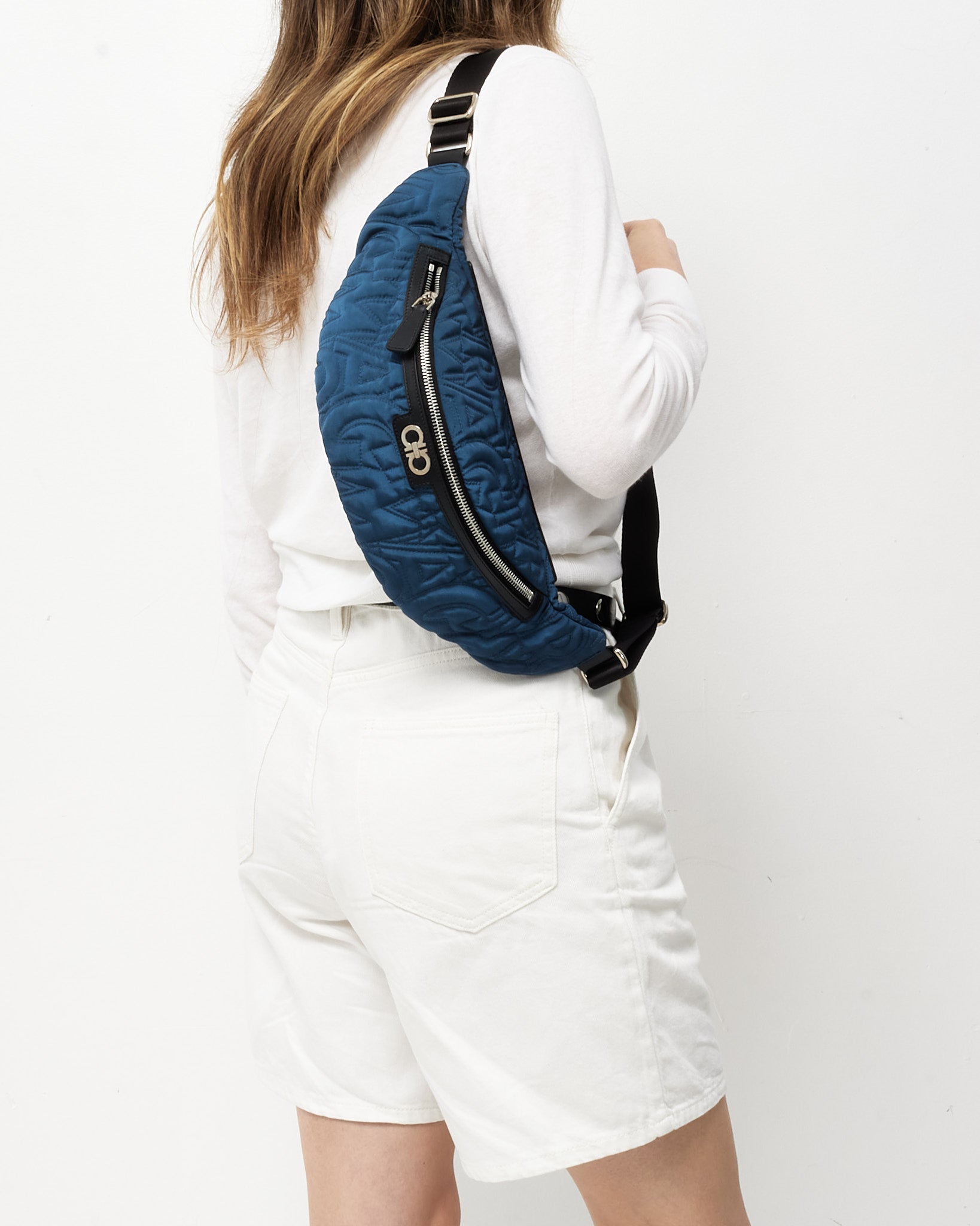 Navy Gancini Logo Embossed Nylon Belt Bag