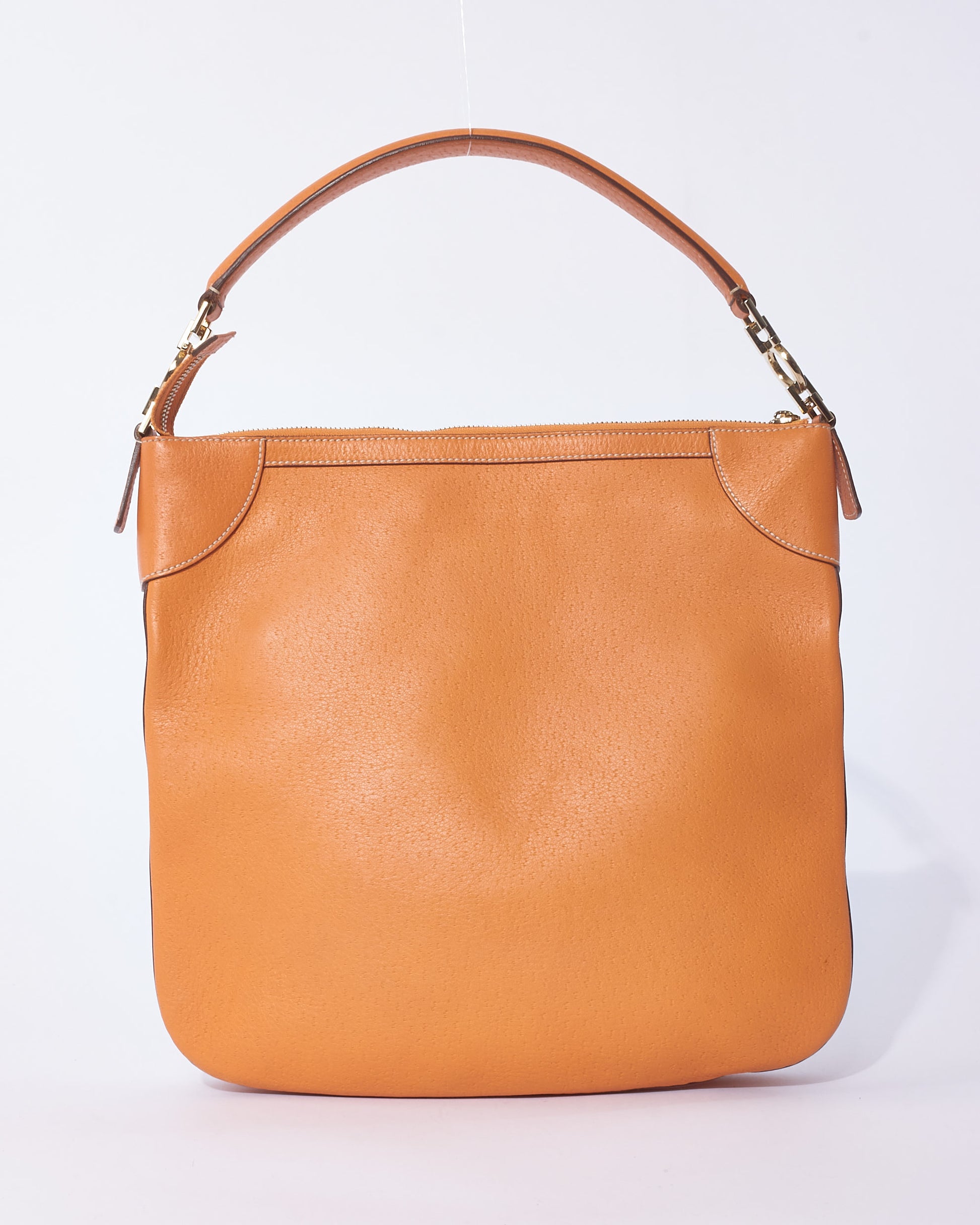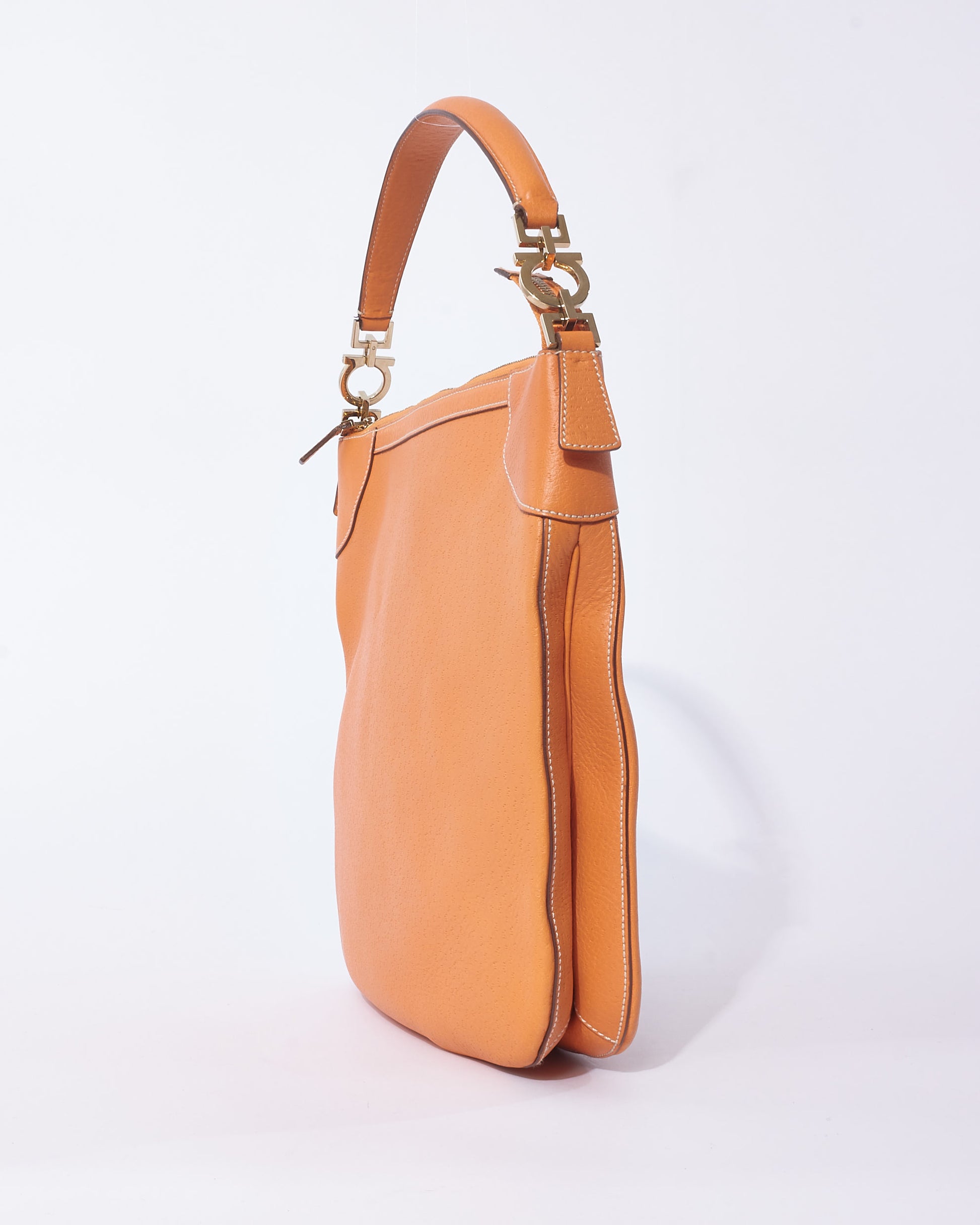 Explore Salvatore Ferragamo's exquisite collection of handbags, featuring this certified pre-owned Orange Leather Hobo Shoulder Bag. Embodying timeless elegance and modern sustainability, each piece, including favorites like this, is authenticated by Retyche. Discover sustainable luxury — shop our current treasures or find inspiration for your next coveted find.