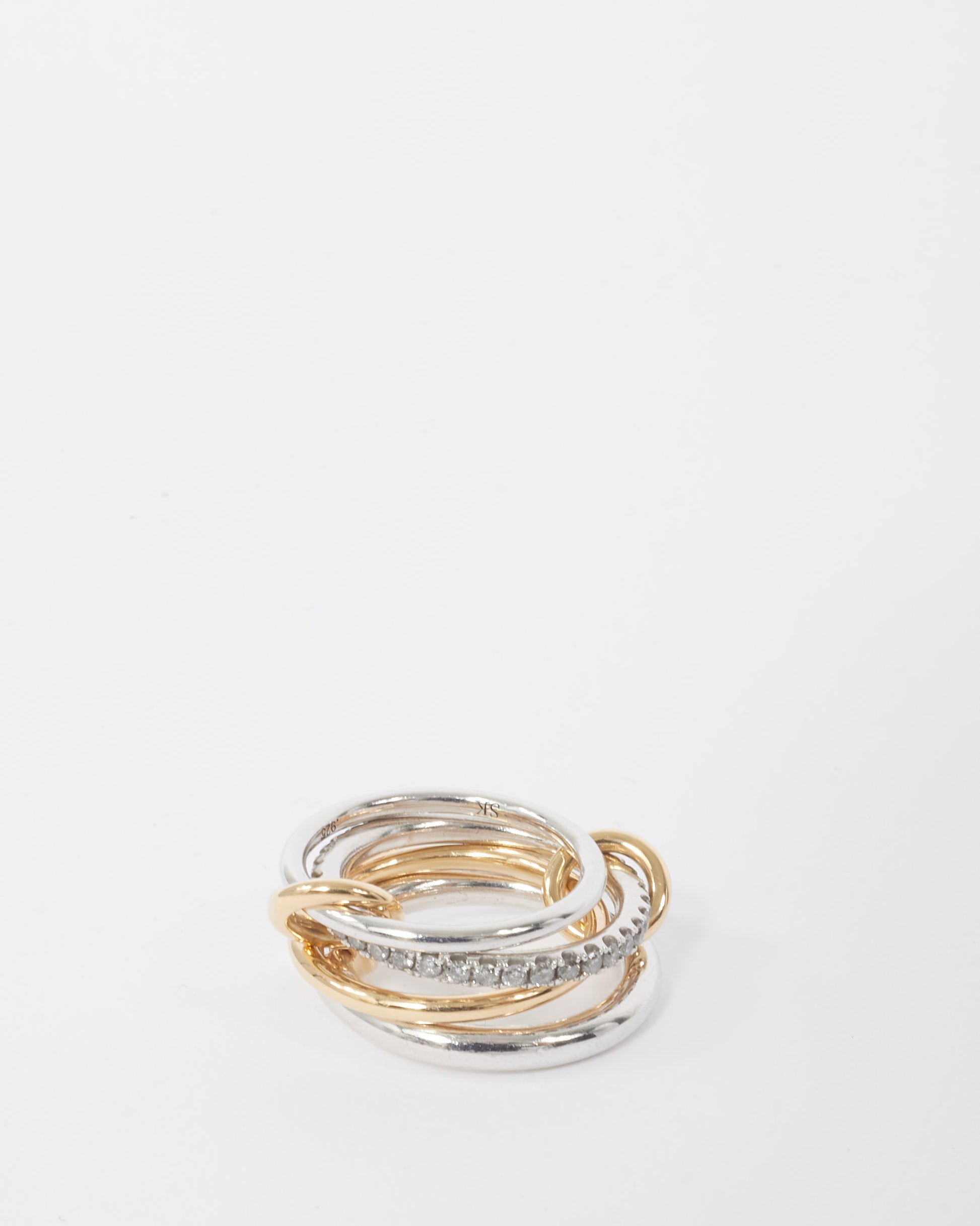Explore Spinelli Kilcollin's exquisite collection of Jewelry, featuring this certified pre-owned Gold, Silver & Diamond Nimbus SG Gris Ring - 6.5. Embodying timeless elegance and modern sustainability, each piece, including favorites like this, is authenticated by Retyche. Discover sustainable luxury — shop our current treasures or find inspiration for your next coveted find.