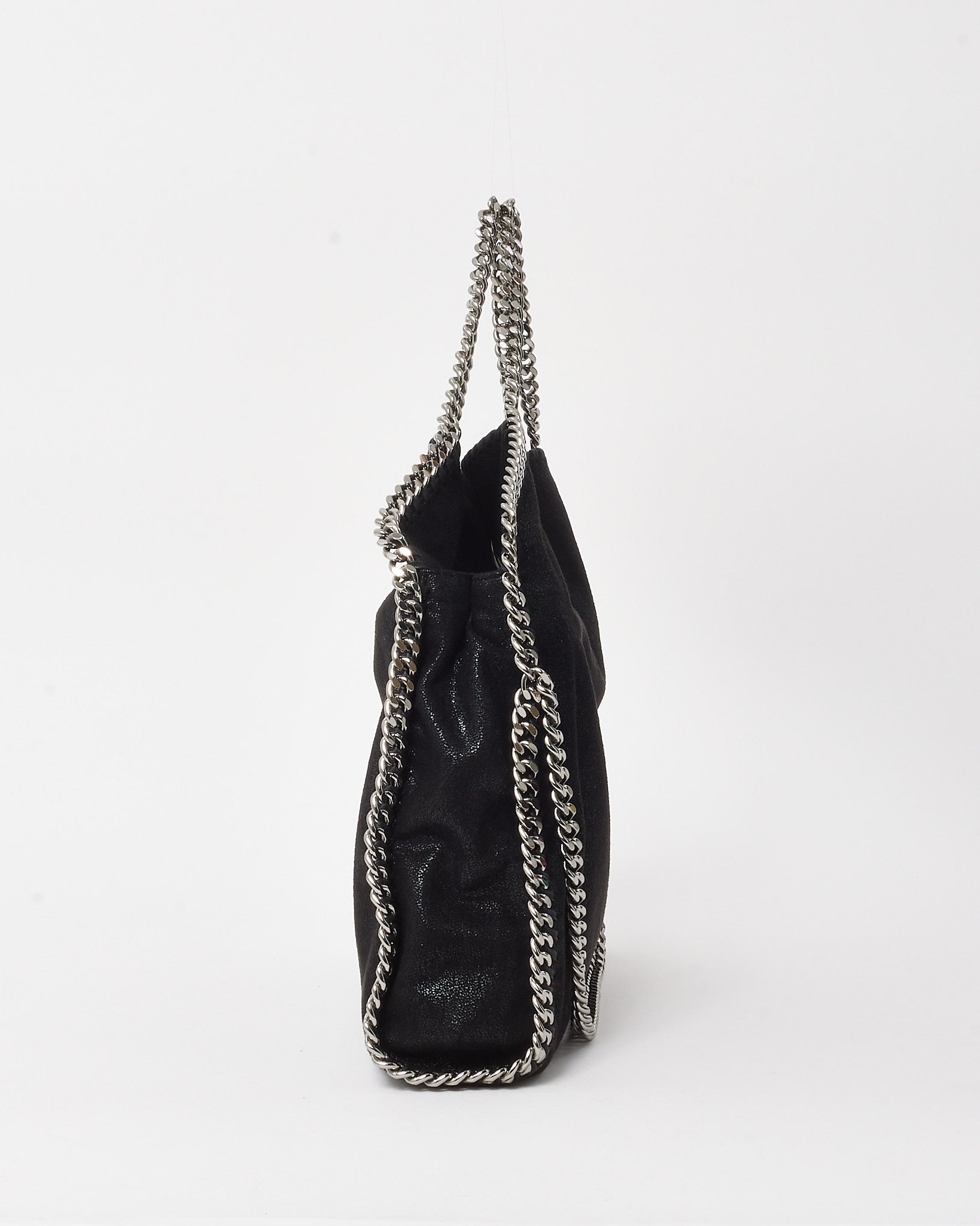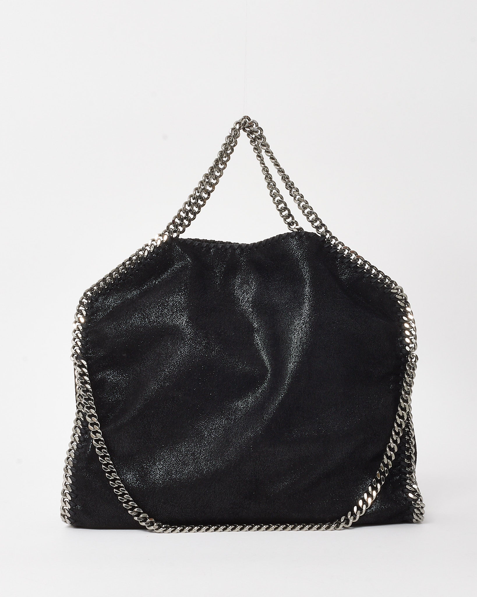 Black Vegan Leather Falabella Fold Over Shoulder Bag