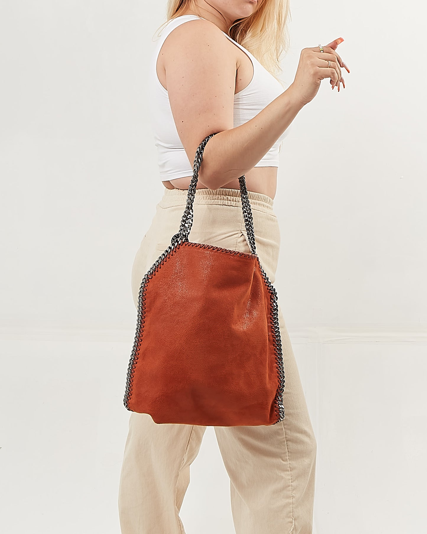 Burnt Orange Vegan Suede Falabella Tote Bag