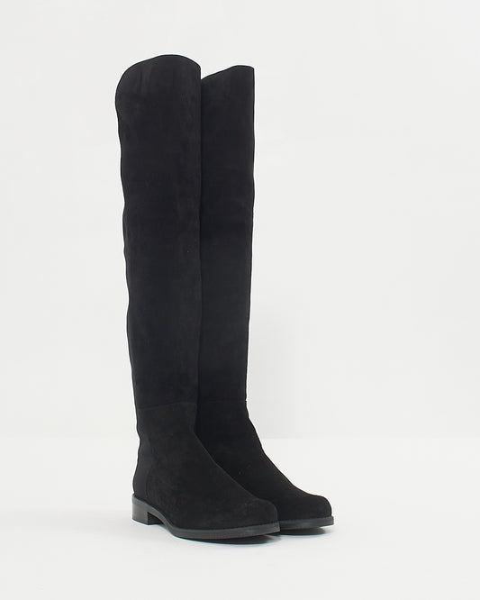 Black Suede 50/50 Stretch Over-the-Knee Boots - 35.5
