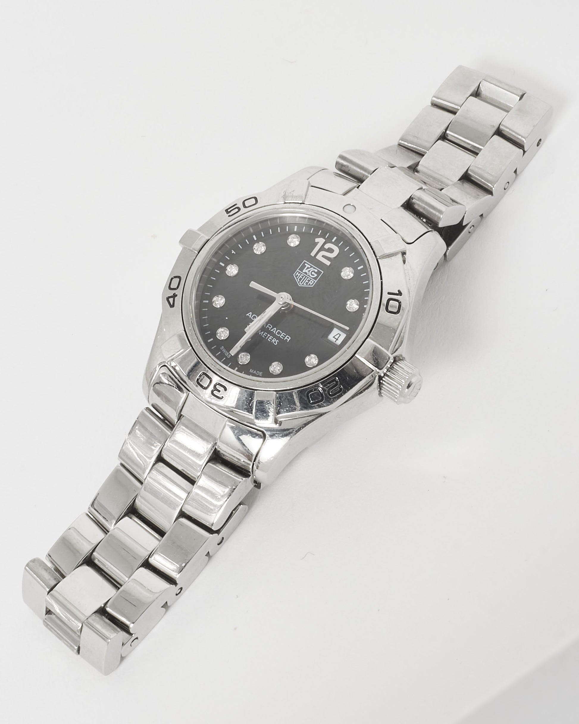 Explore Tag Heuer's exquisite collection of jewelry, featuring this certified pre-owned Aquaracer Black Dial & Diamond 28MM Watch. Embodying timeless elegance and modern sustainability, each piece, including favorites like this, is authenticated by Retyche. Discover sustainable luxury — shop our current treasures or find inspiration for your next coveted find.