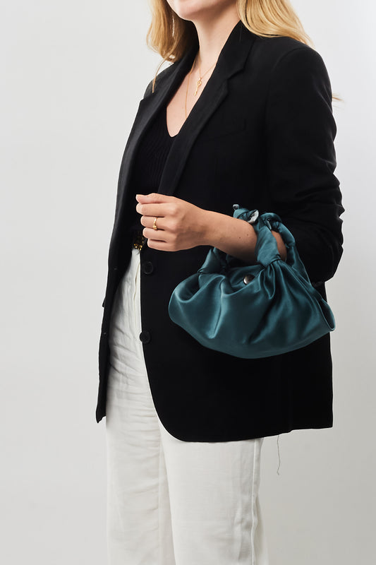 Explore The Row's exquisite collection of handbags, featuring this certified pre-owned Teal Satin Small Ascot Bag. Embodying timeless elegance and modern sustainability, each piece, including favorites like this, is authenticated by Retyche. Discover sustainable luxury — shop our current treasures or find inspiration for your next coveted find.