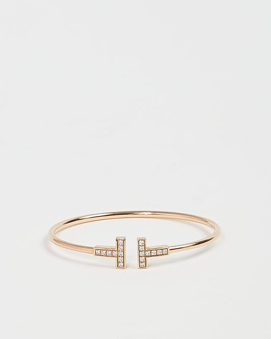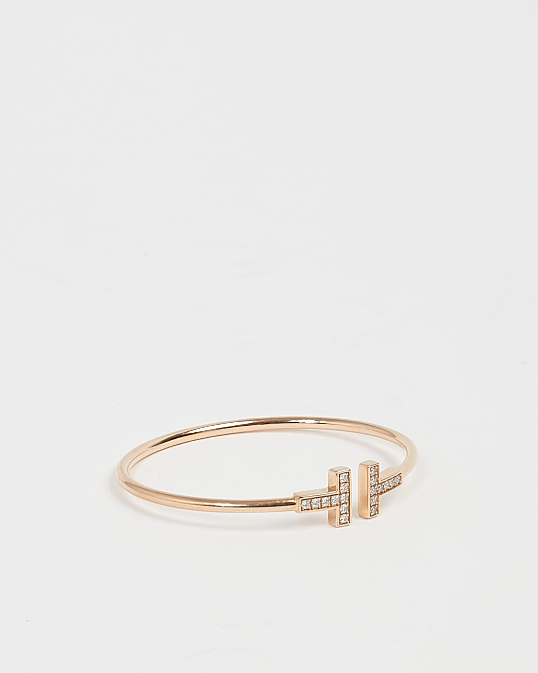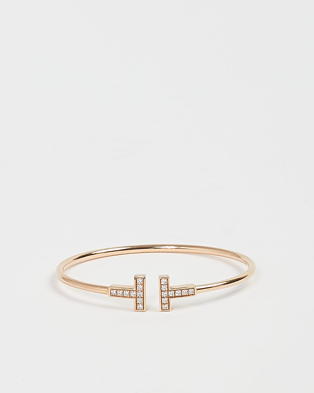 18K Rose Gold Diamonds T Wire Cuff Bracelet