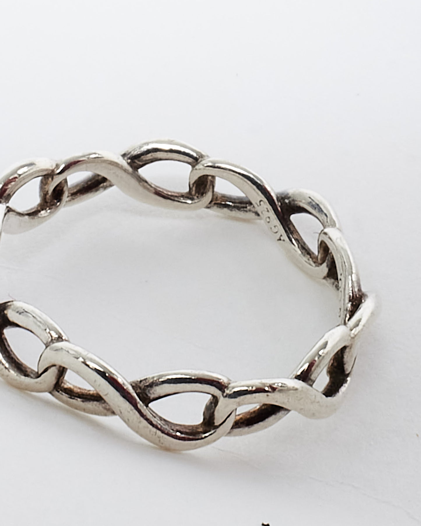 Explore Tiffany & Co's exquisite collection of Jewelry, featuring this certified pre-owned 925 Sterling Silver Inifity Narrow Band Ring. Embodying timeless elegance and modern sustainability, each piece, including favorites like this, is authenticated by Retyche. Discover sustainable luxury — shop our current treasures or find inspiration for your next coveted find.