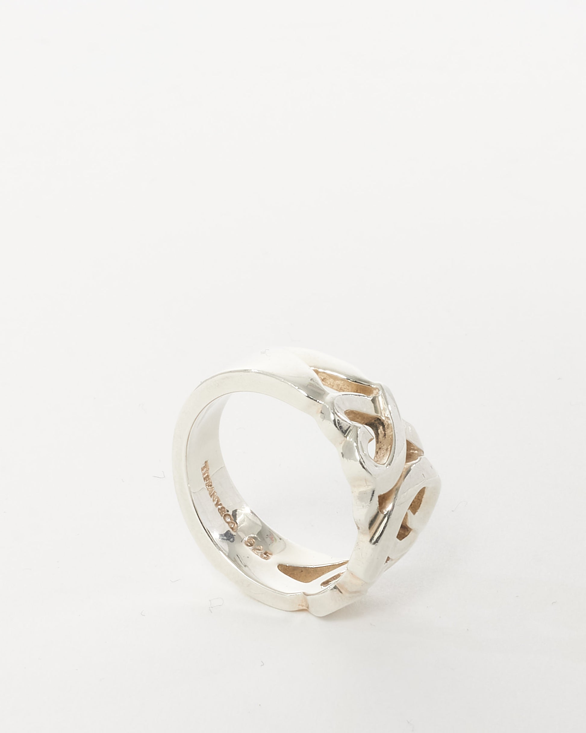 Sweet, sculptural, and effortlessly elegant, the pre-owned authentic Tiffany & Co. 925 Sterling Silver Paloma Picasso 3 Heart Ring is a timeless piece designed with love in mind. Crafted from gleaming sterling silver, this delicate ring features three interlocking open hearts, a signature motif of Paloma Picasso’s romantic, modern aesthetic.