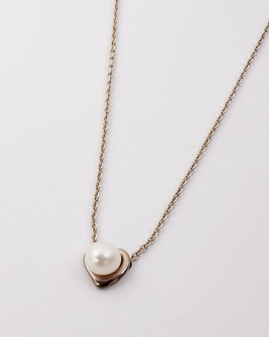 Silver & Pearl Open Heart Lariat Elsa Peretti Necklace