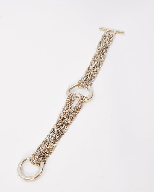 Sterling Silver Heart Toggle Multi Chain Mesh Necklace