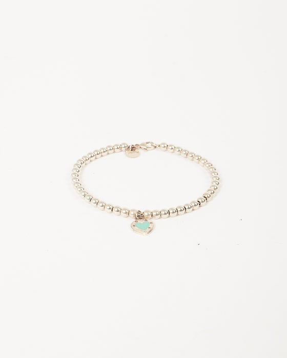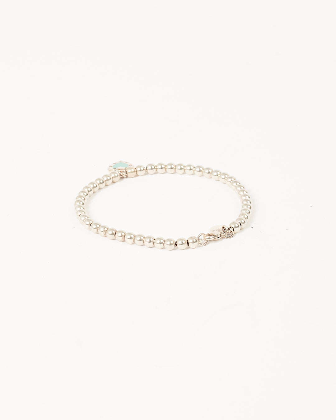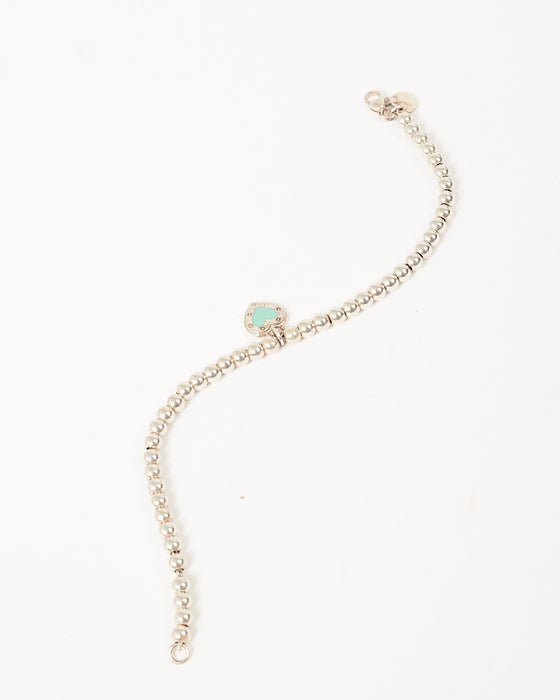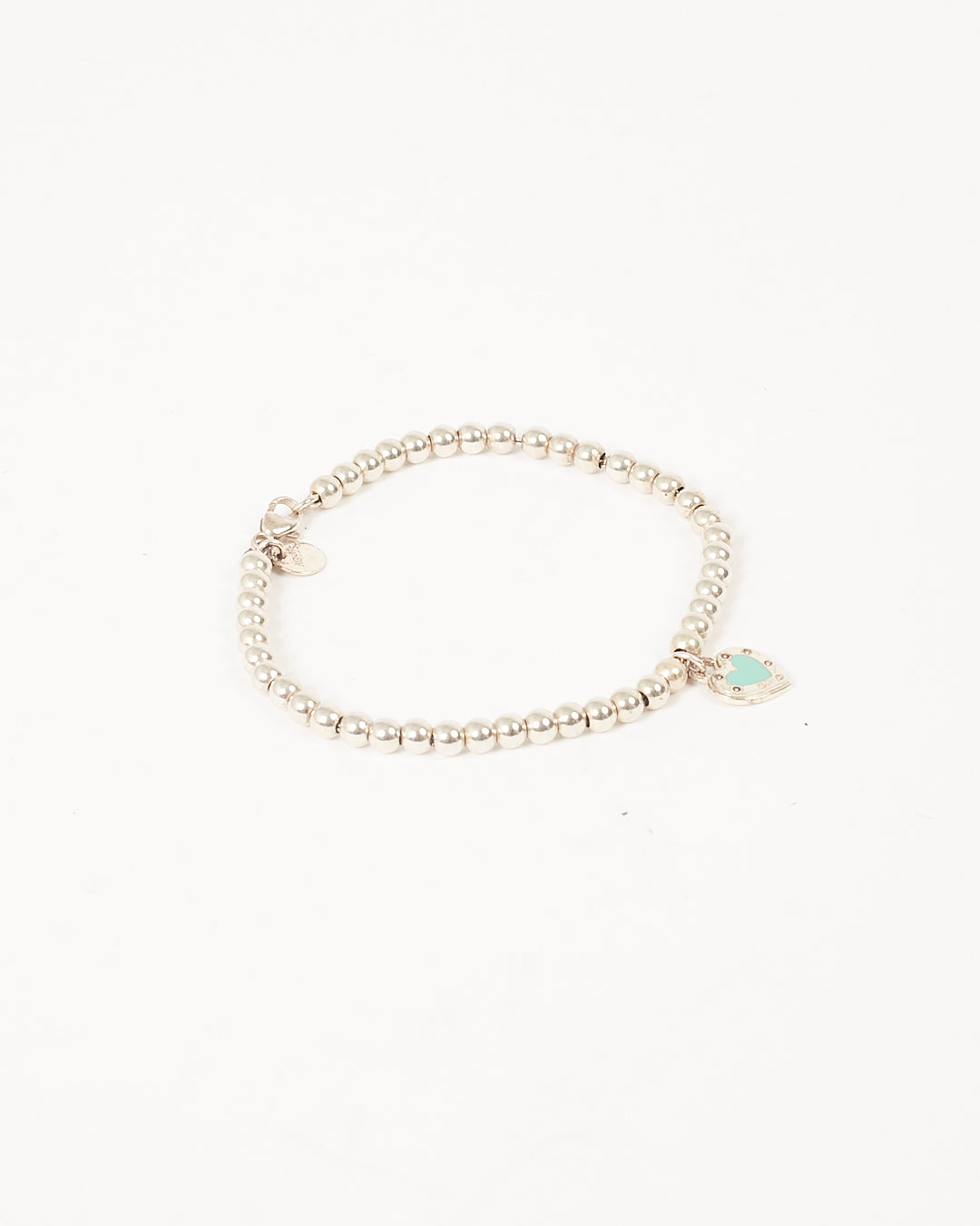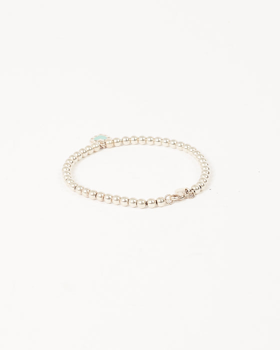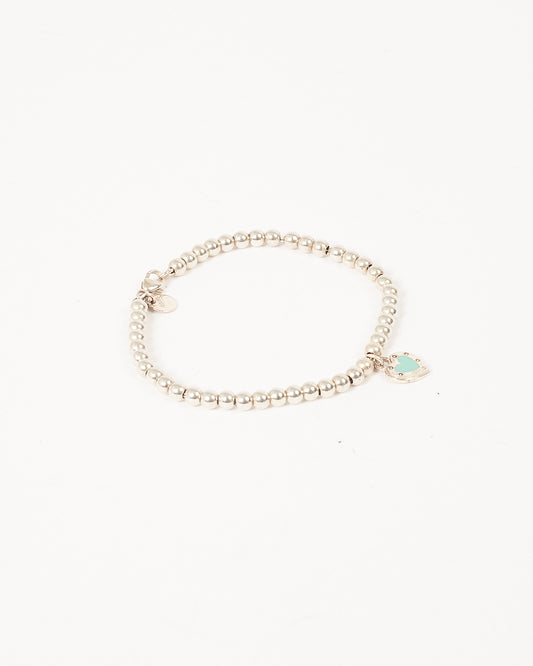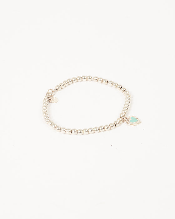 Sterling Silver Blue Love Studded Heart Beaded Bracelet