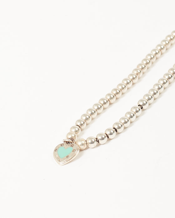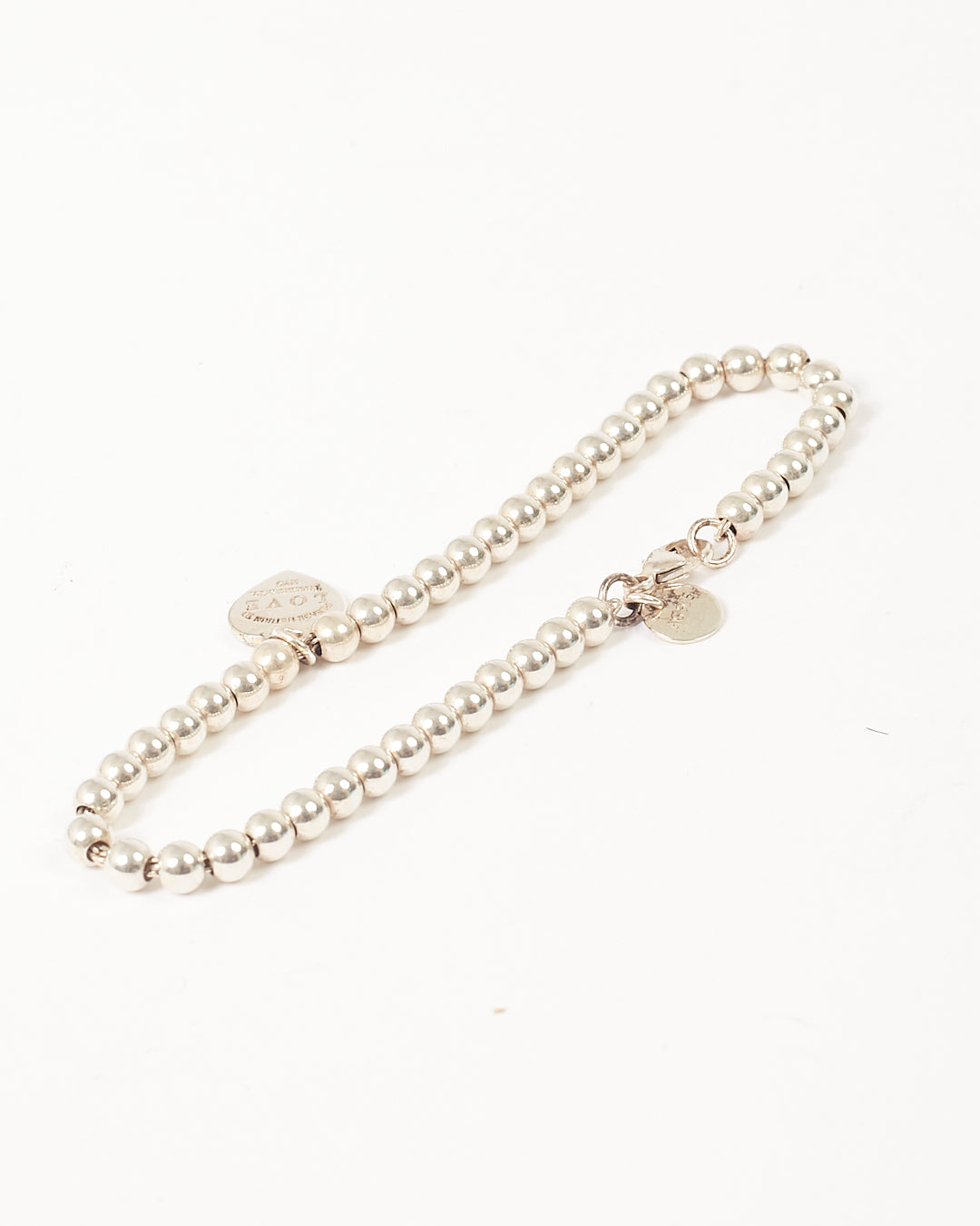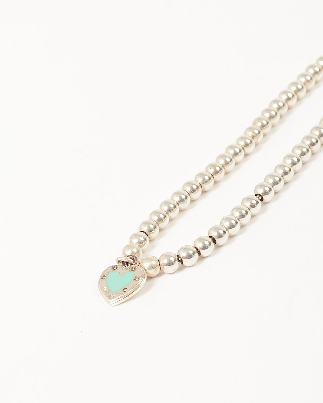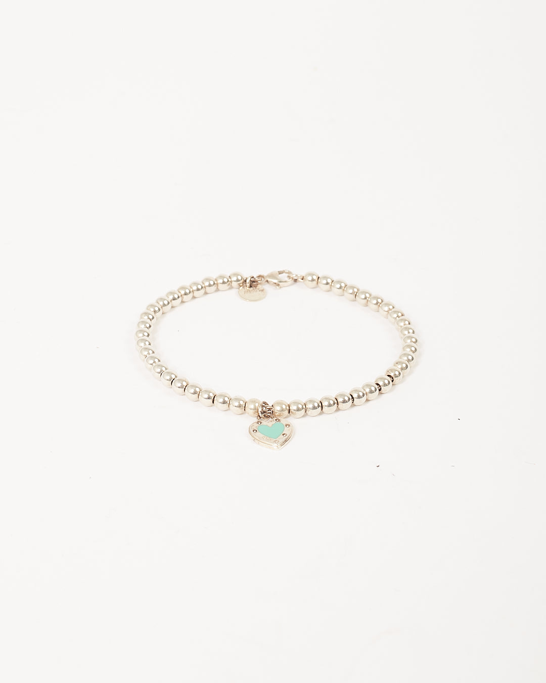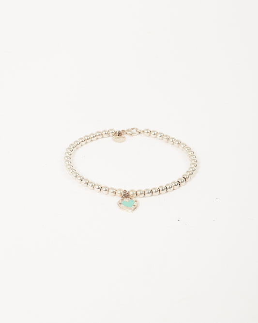 Sterling Silver Blue Love Studded Heart Beaded Bracelet