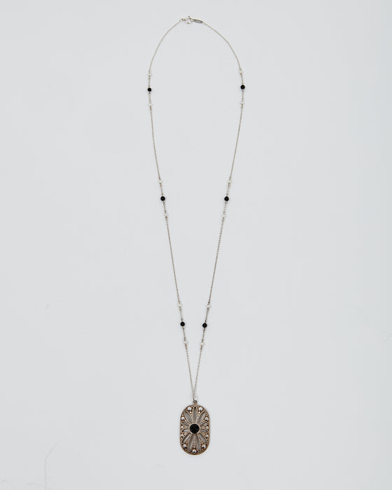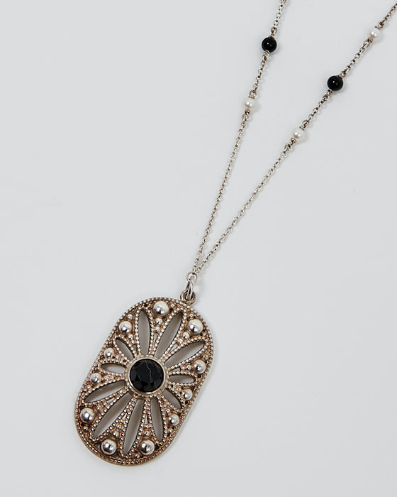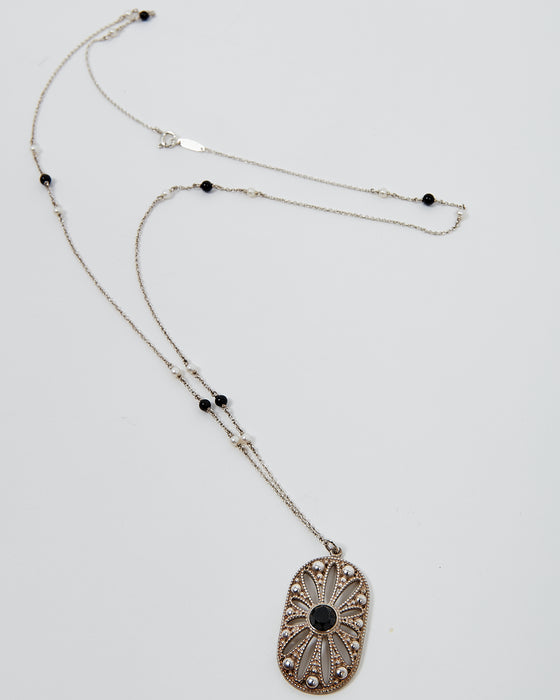 Tiffany Sterling Silver Onyx & Pearl Ziegfeld Daisy Pendant Necklace