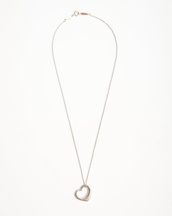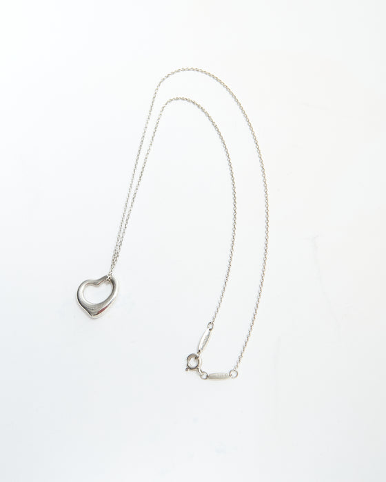 Tiffany Sterling Silver Open Heart Pendant Necklace