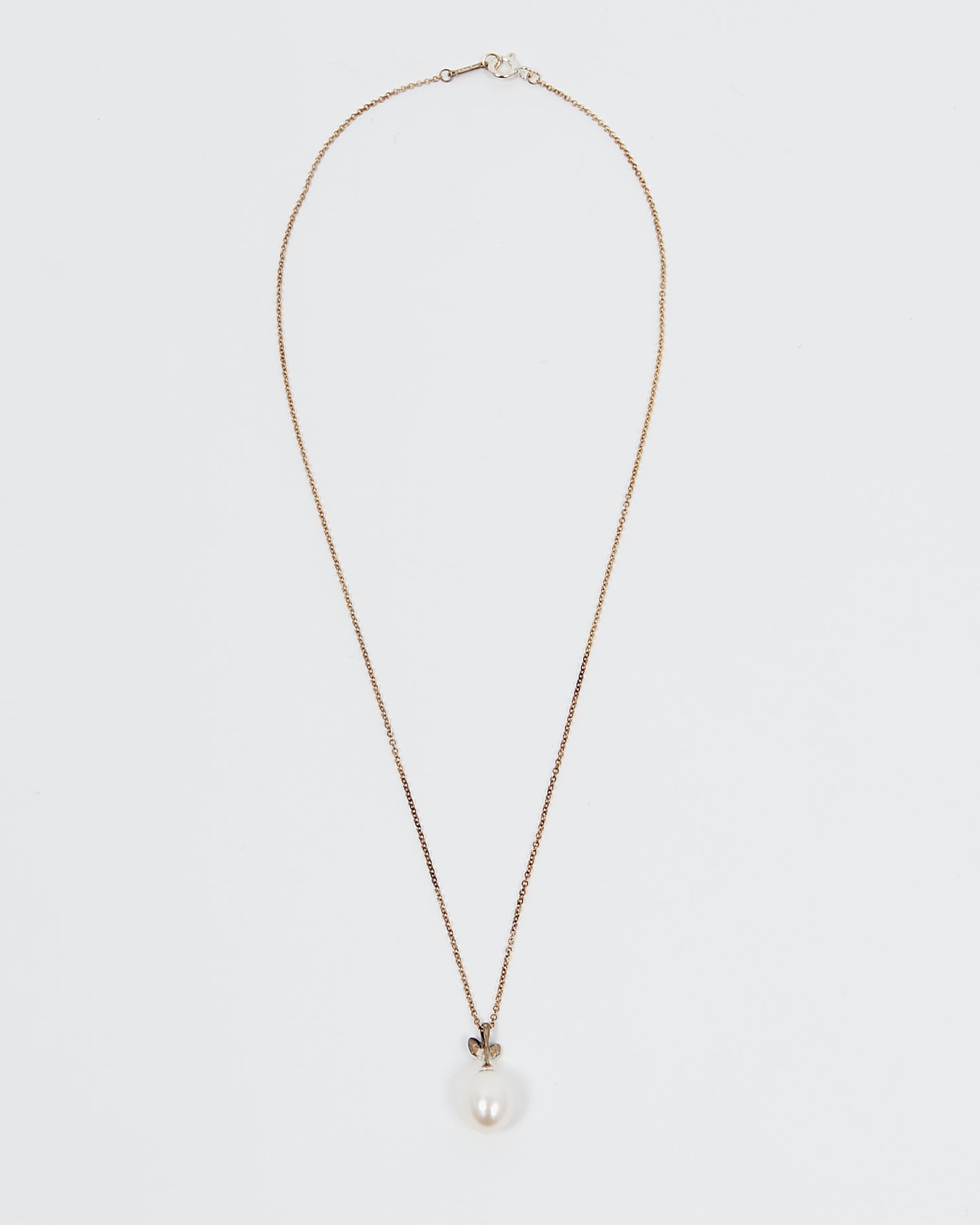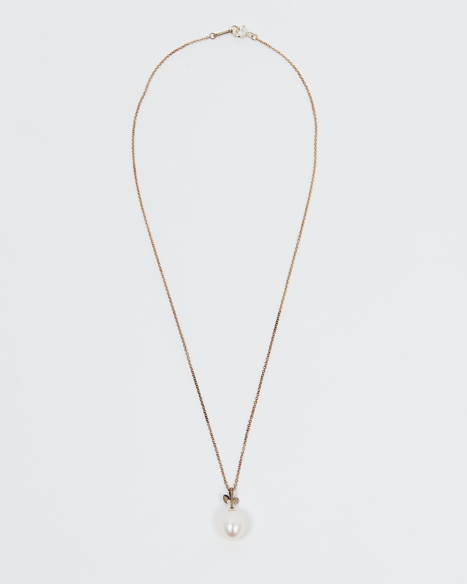 Tiffany Sterling Silver Pearl Drop Olive Leaf Pendant