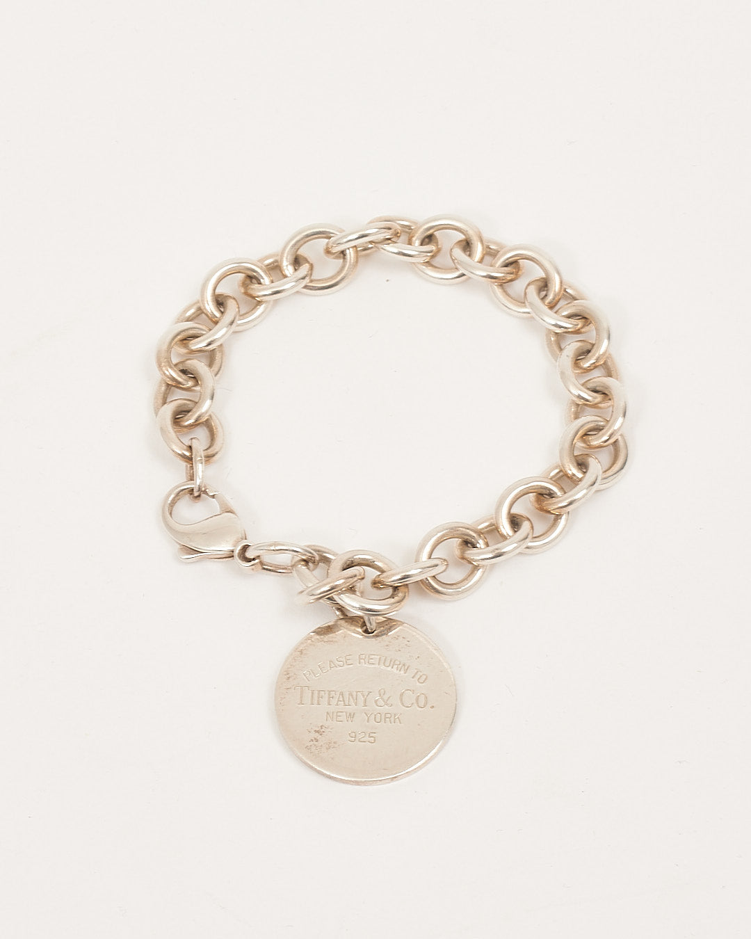 Tiffany Sterling Silver Round Tag Charm Link Bracelet