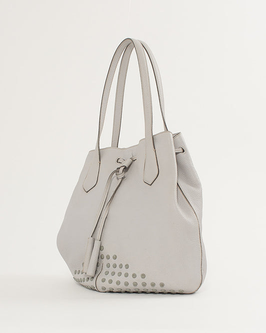 Cloud Grey Leather Studded Hobo Shoulder Bag