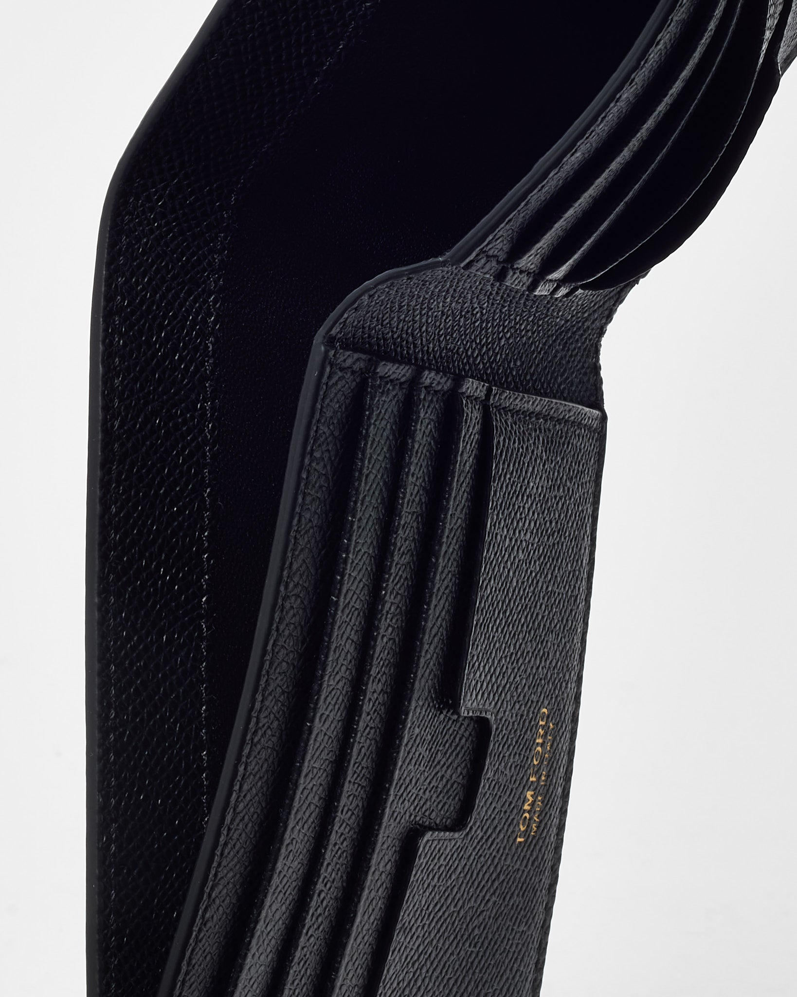Refine your accessories with this pre-loved authentic Tom Ford Small Bi-Fold Wallet, crafted from black grained leather. Featuring the iconic TF logo in polished metal at the corner, this compact design offers a sleek silhouette with multiple card slots and a bill compartment. Durable and sophisticated, it’s the perfect everyday wallet for those who appreciate understated luxury.