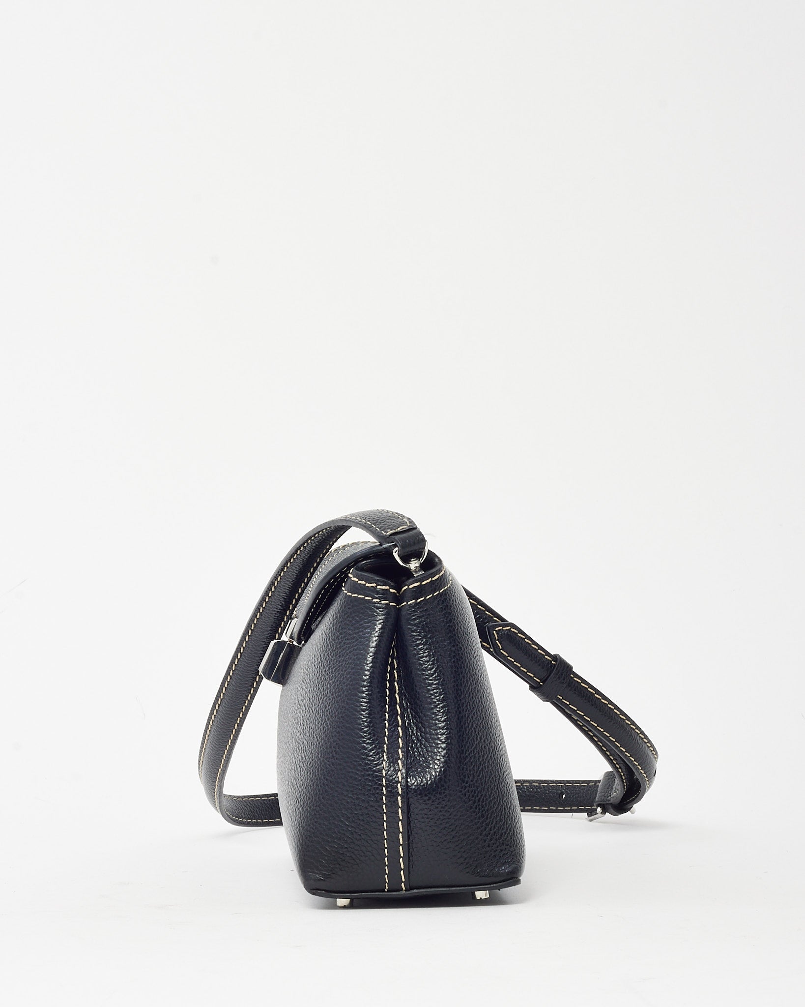 Step into modern minimalism with this pre-loved authentic Totême T-Lock Clutch Bag, crafted in smooth black leather with contrasting white topstitching for a clean, architectural edge. The sleek envelope silhouette is secured with the signature T-lock closure, combining function with refined detail. A detachable strap allows for versatile styling—carry it as an elegant clutch or wear it crossbody for hands-free ease. A timeless, understated piece that perfectly complements both casual tailoring and evening ensembles.