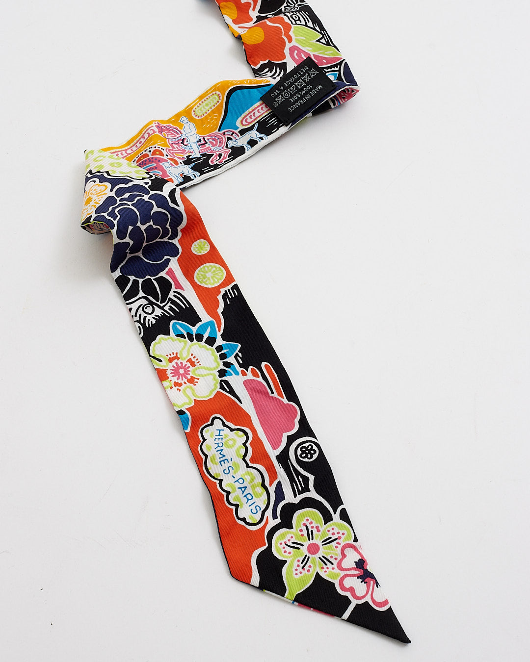 Black Multi Floral Print Twilly Scarf
