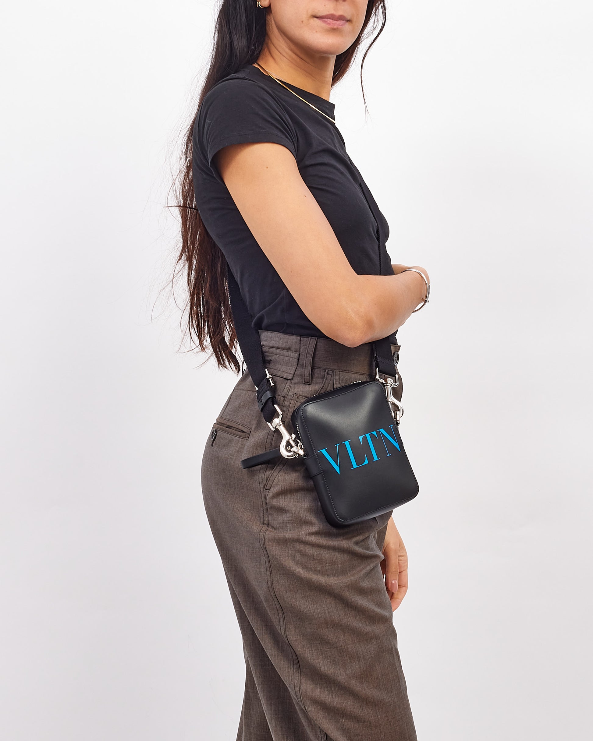 Black Leather Small VLTN Crossbody Bag