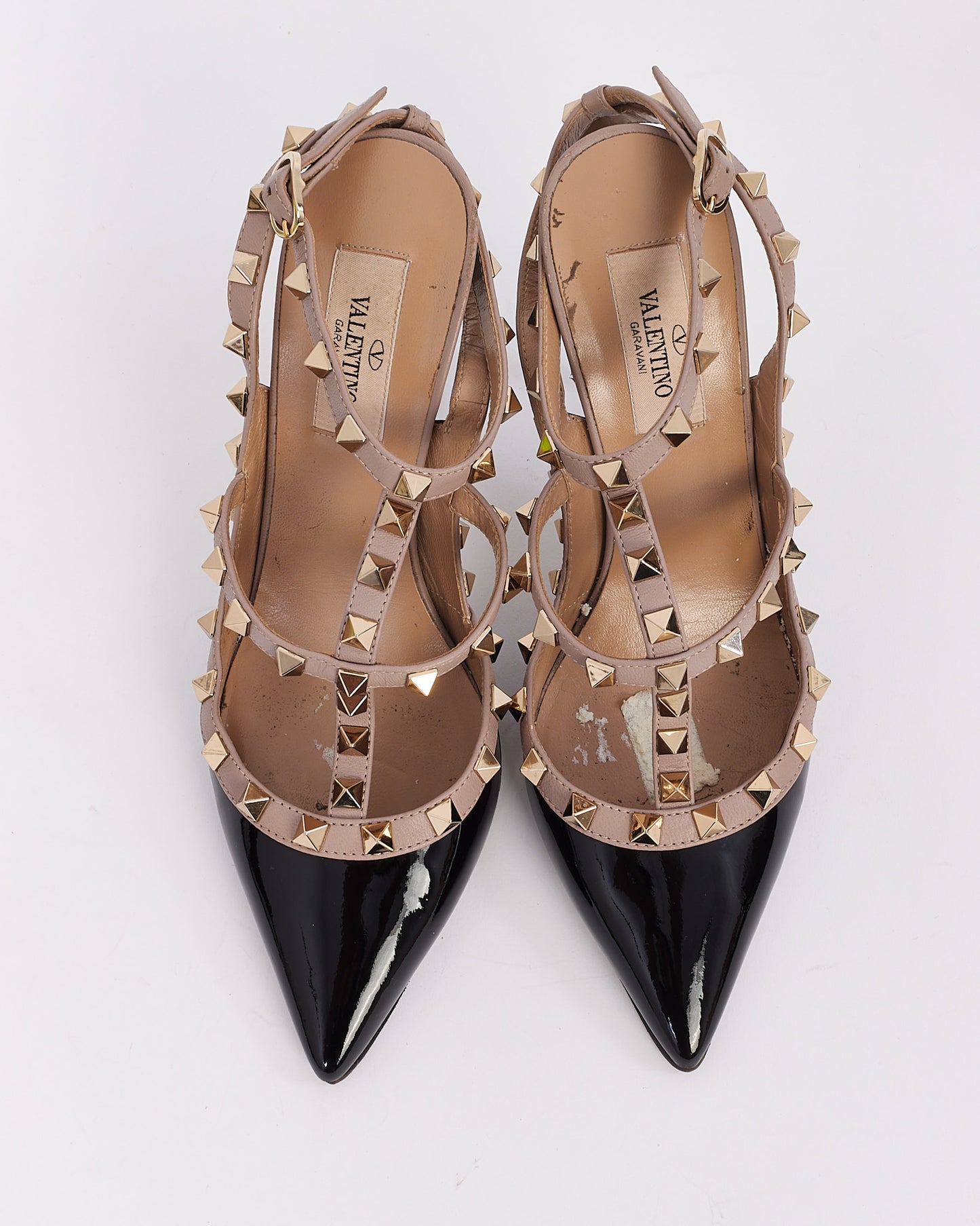 Black Patent Leather Rockstud Ankle Strap Pumps - 38