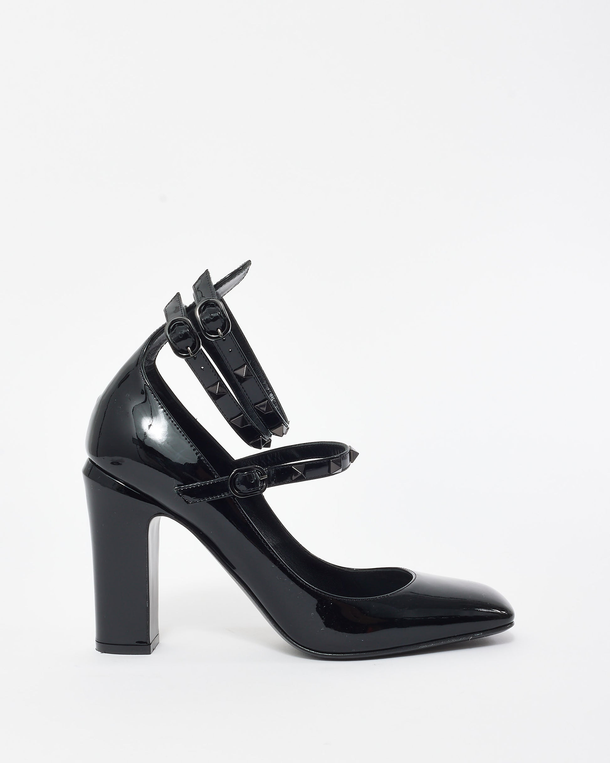 Black Patent Leather Rockstud Mary Jane Pumps - 39.5