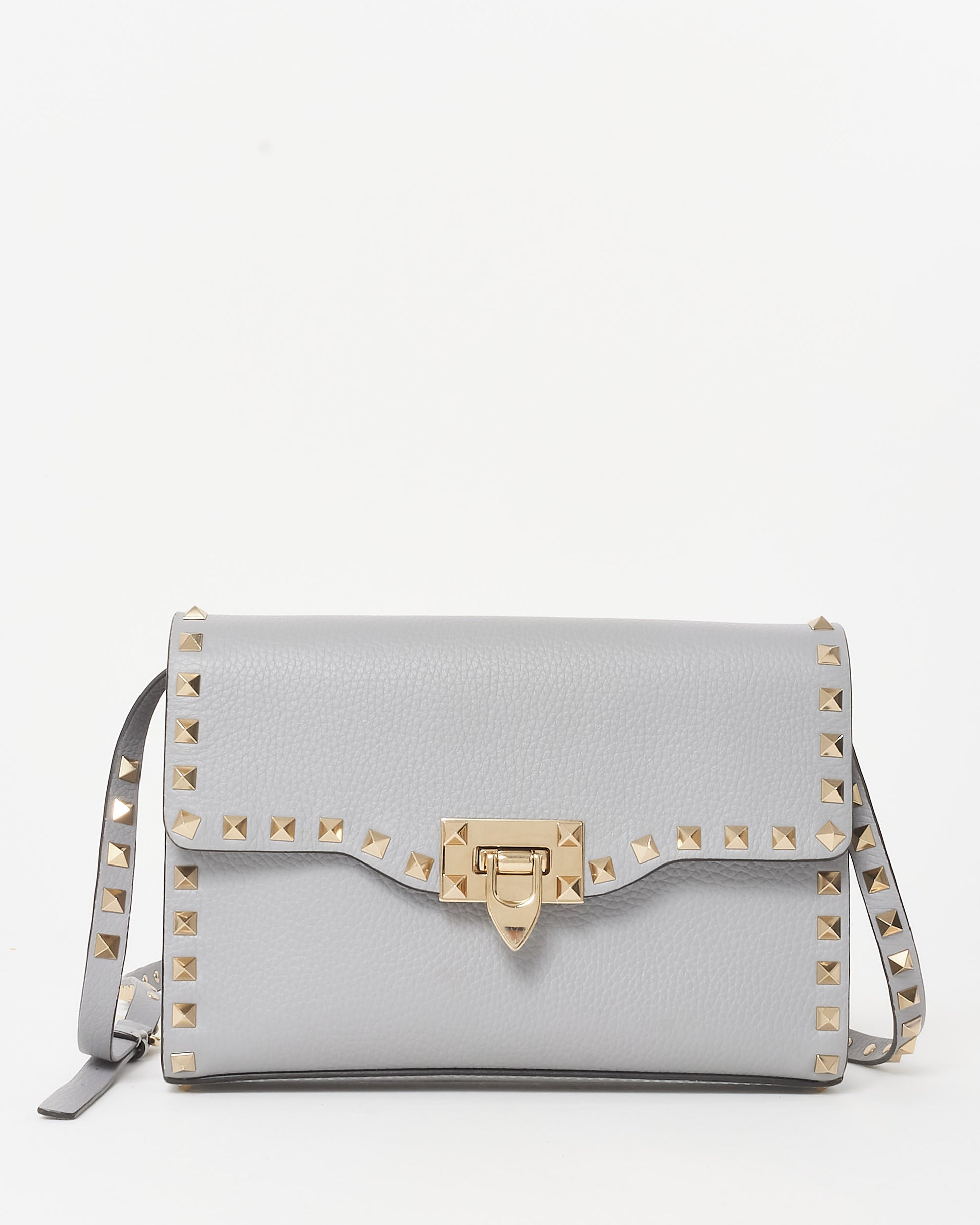 Grey Grained Leather Small Rockstud Crossbody Bag