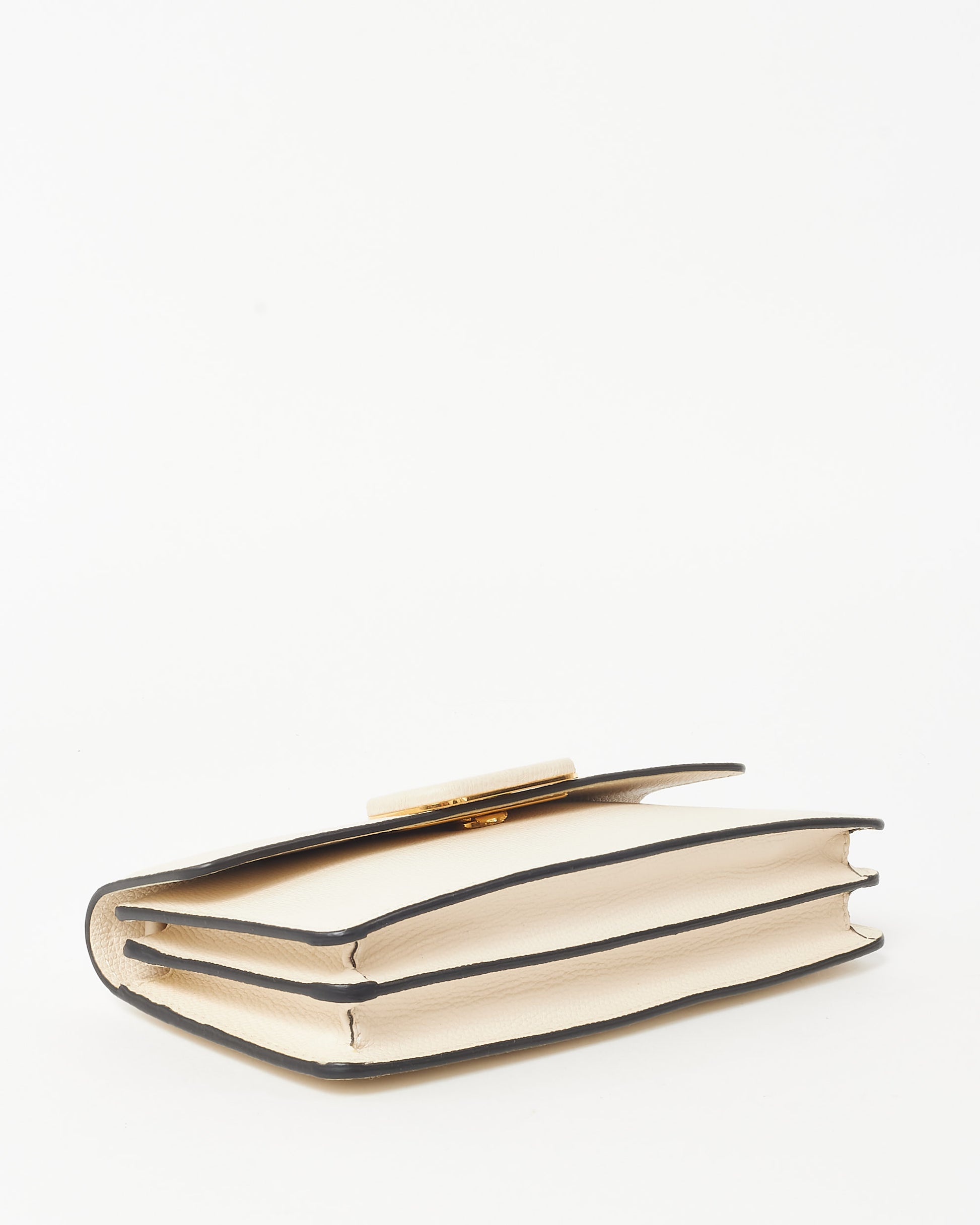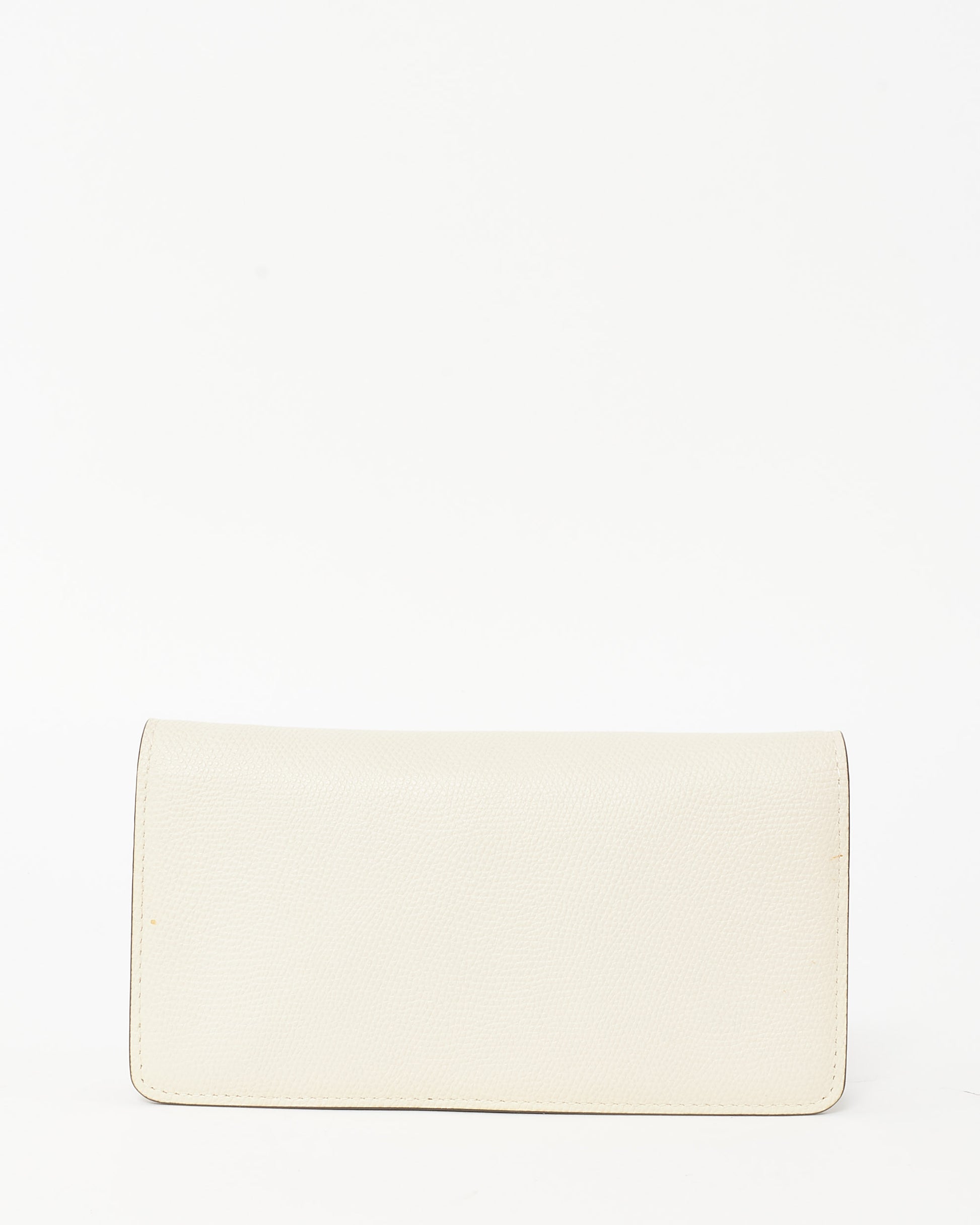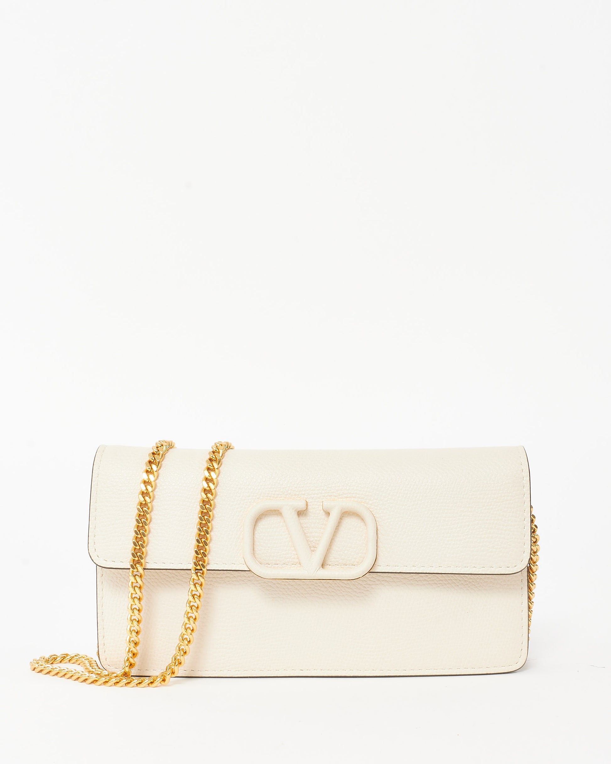 Elegantly refined with a modern edge, the authentic pre-owned Valentino Off-White Leather VLogo Signature Wallet on Chain Bag is the perfect blend of sophistication and functionality. Crafted from smooth off-white leather, this compact yet versatile accessory features Valentino’s iconic VLogo emblem in a sleek tonal white finish, adding a touch of understated luxury.