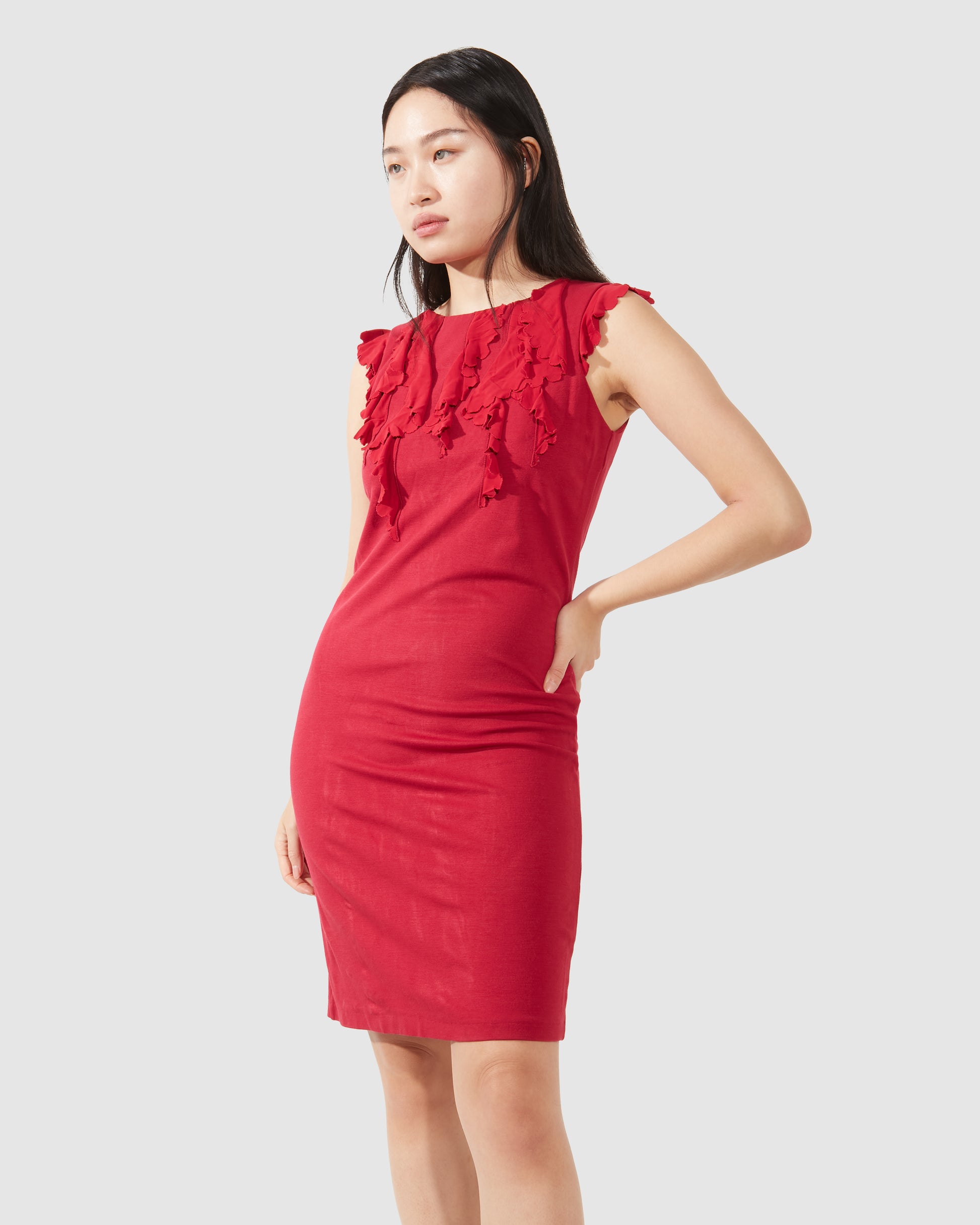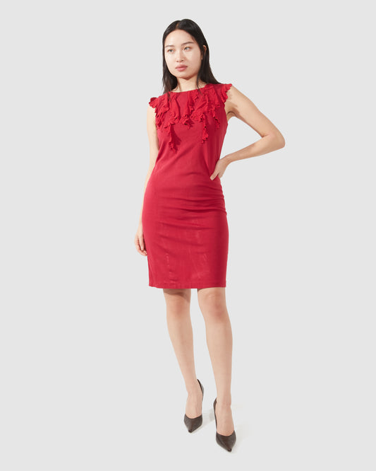 Red Frill Collar Cocktail Dress - M