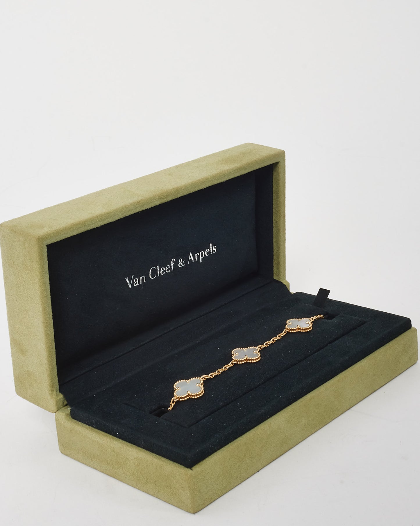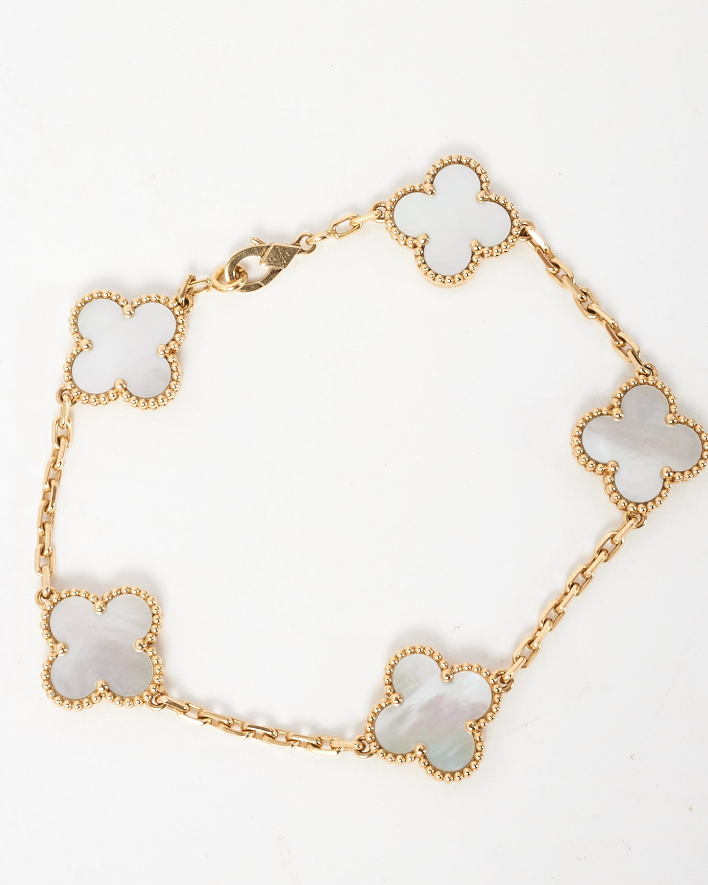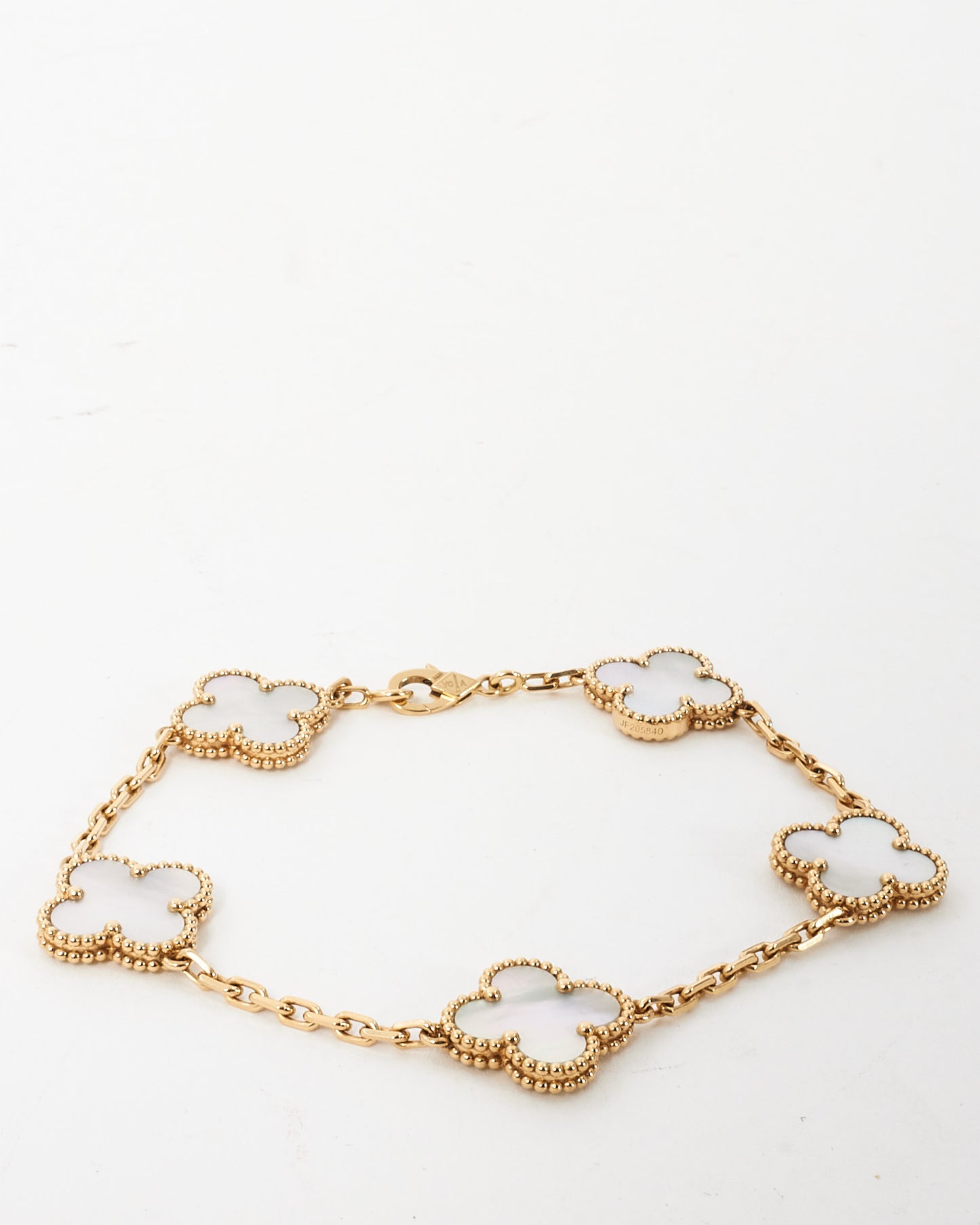 18K Yellow Gold and Mother-of-Pearl Vintage Alhambra 5 Motif Bracelet