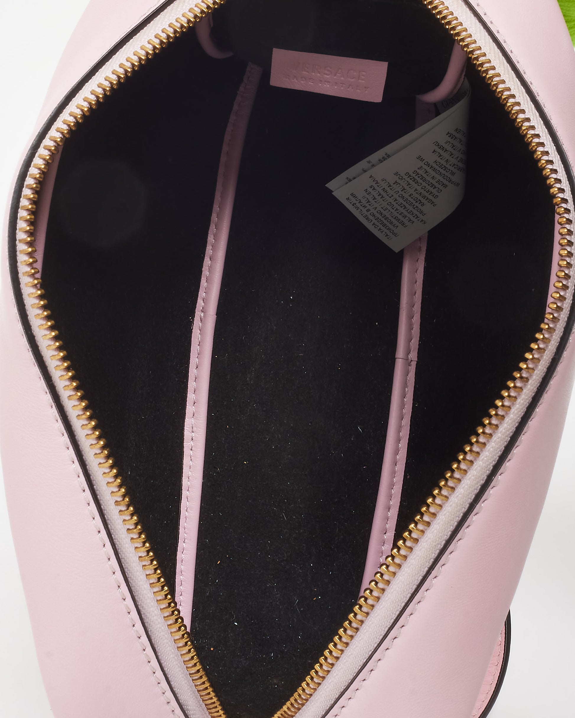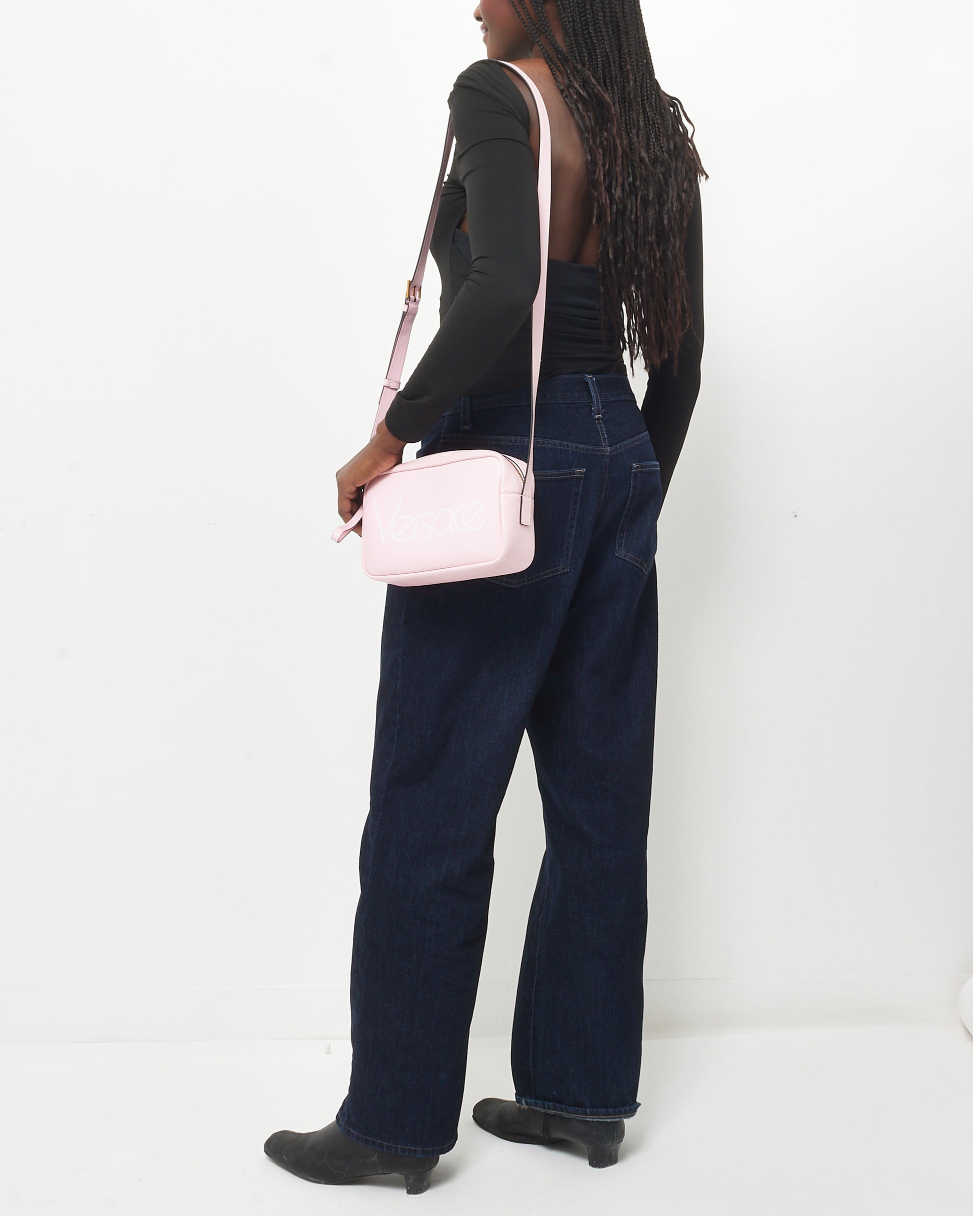Playful yet sophisticated, the authentic pre-owned Versace Pink Leather Logo Camera Crossbody Bag is a stylish everyday essential. Crafted from smooth pink leather, this bag features a structured, compact silhouette designed for both function and fashion.