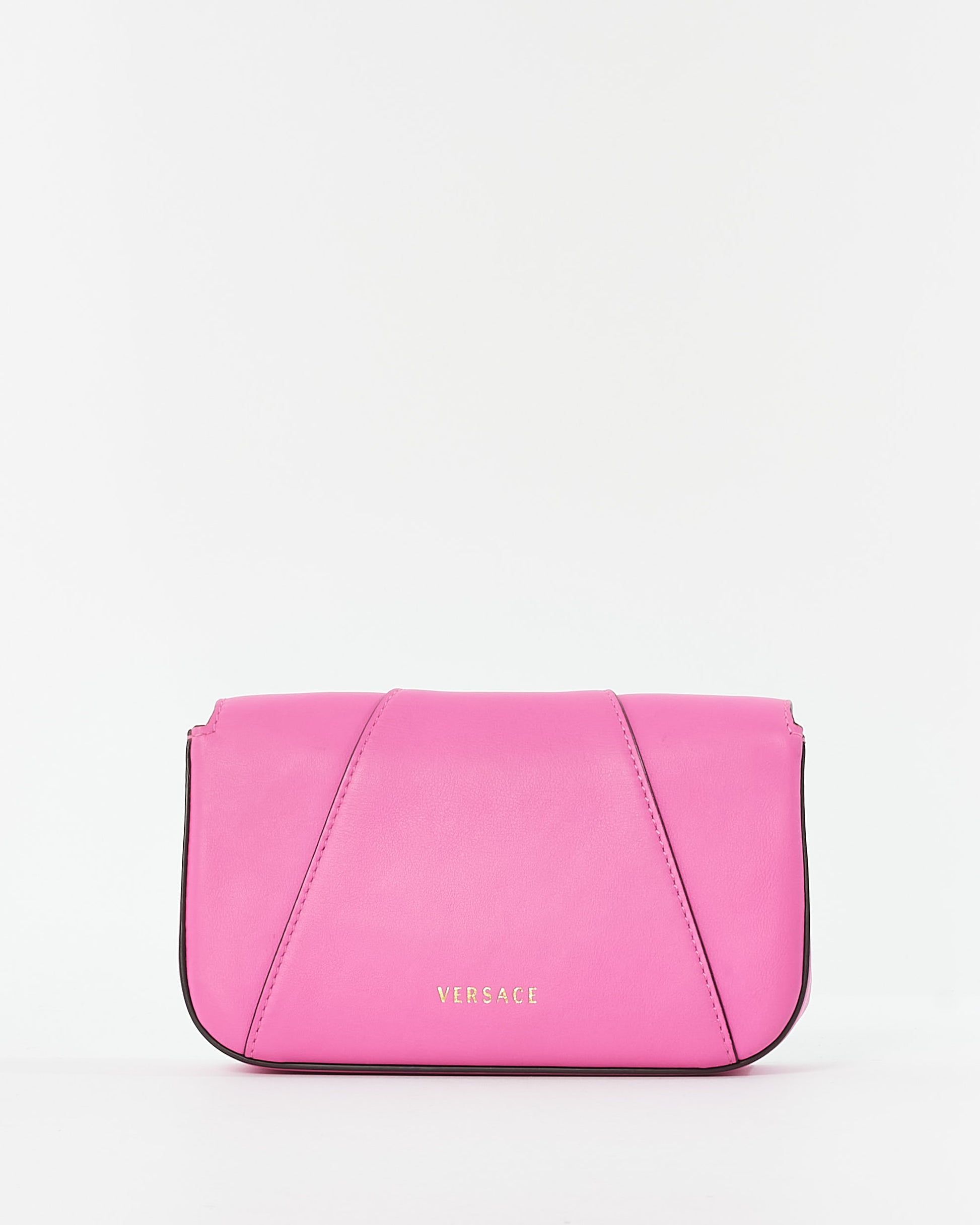 Explore Versace's exquisite collection of handbags, featuring this certified pre-owned Pink Leather Virtus Crossbody Bag. Embodying timeless elegance and modern sustainability, each piece, including favorites like this, is authenticated by Retyche. Discover sustainable luxury — shop our current treasures or find inspiration for your next coveted find.
