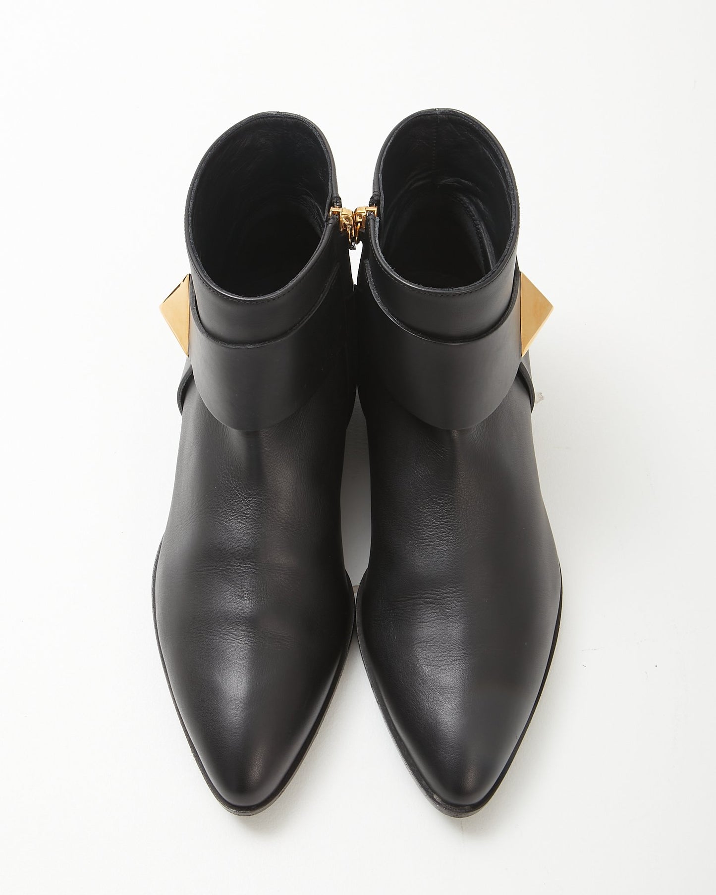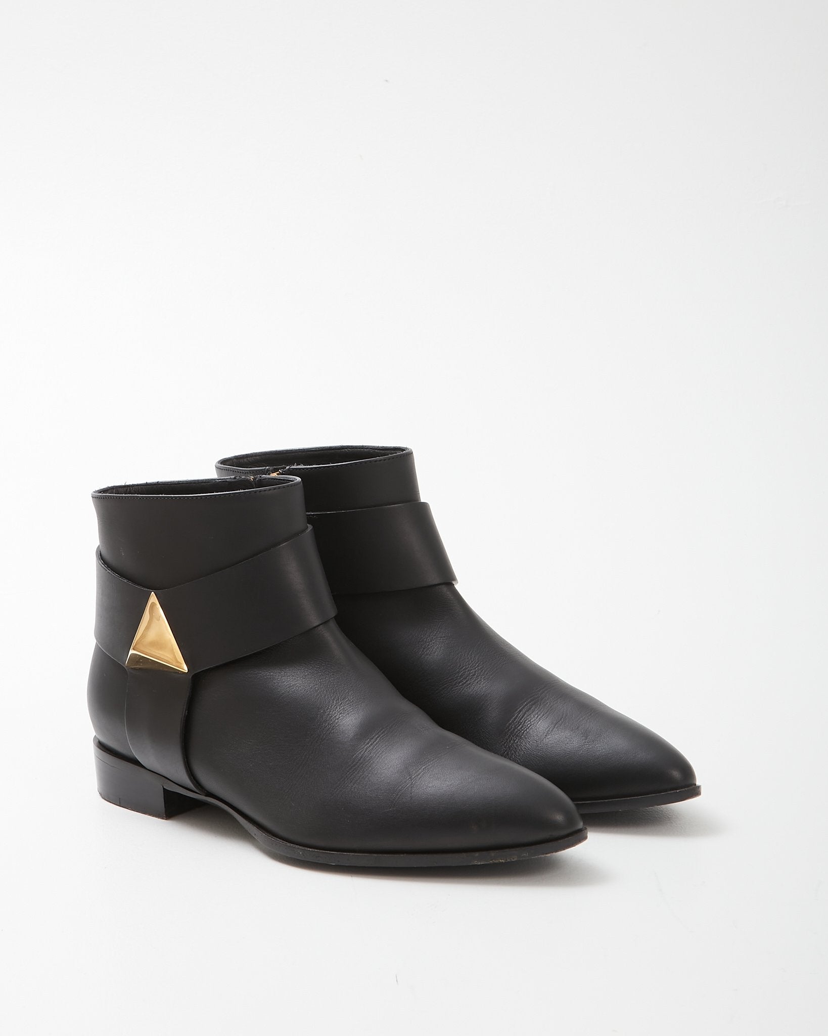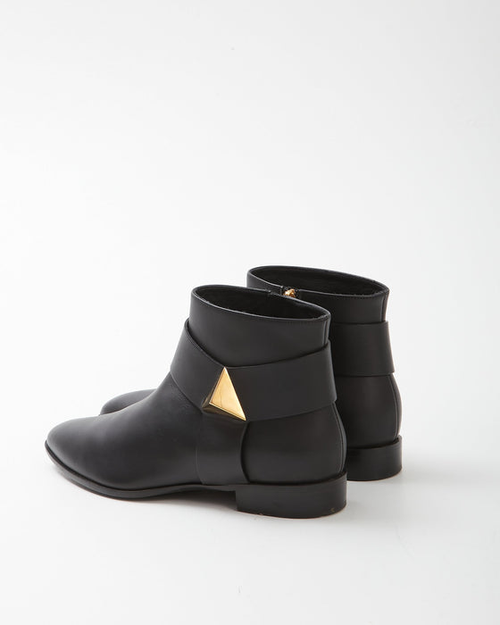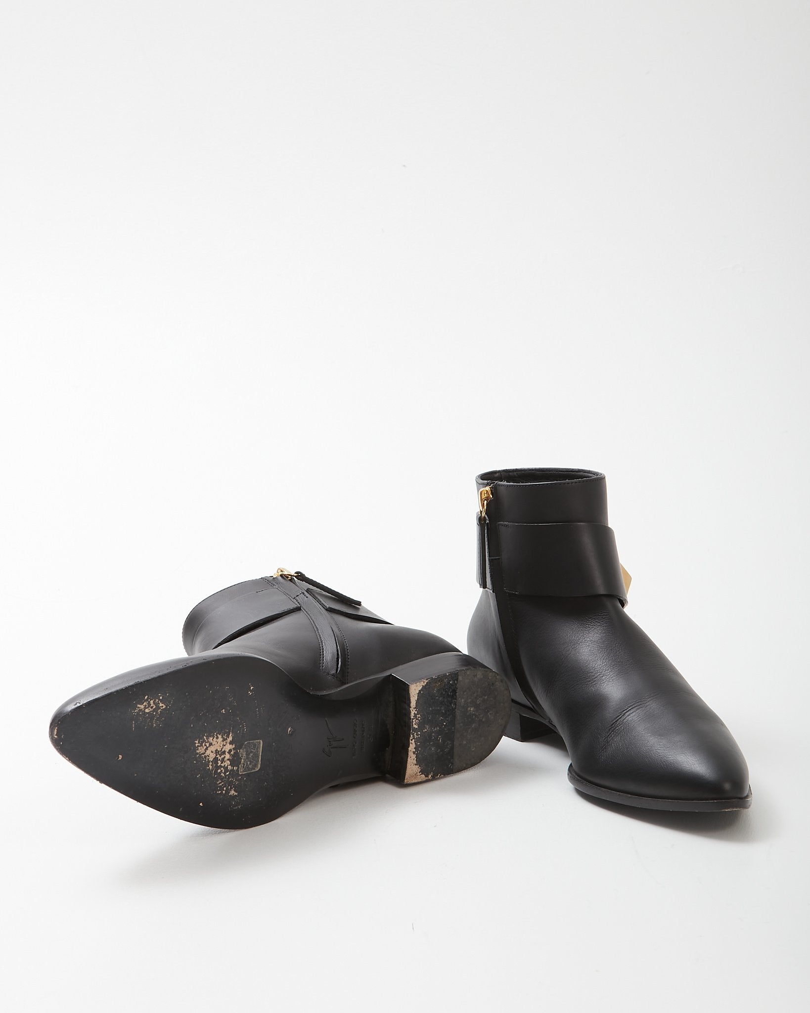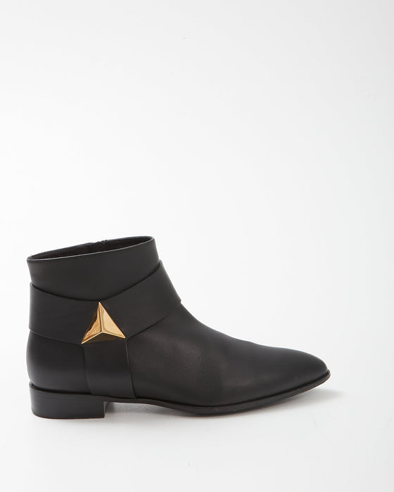 Zanotti Black Leather Gold Stud Detail Chelsea Boots- 37.5